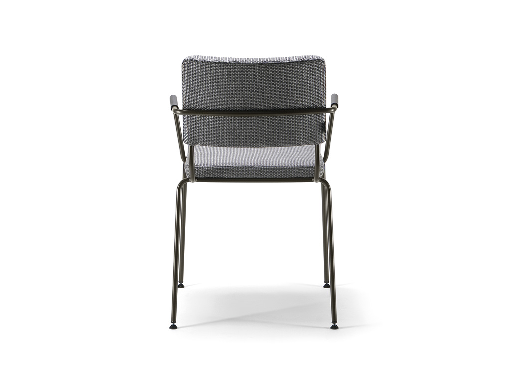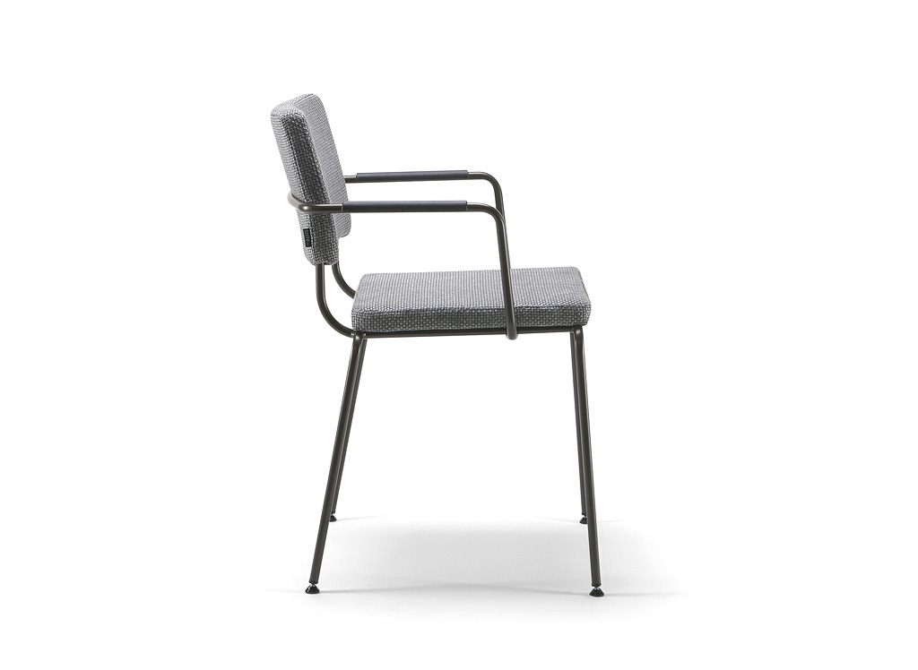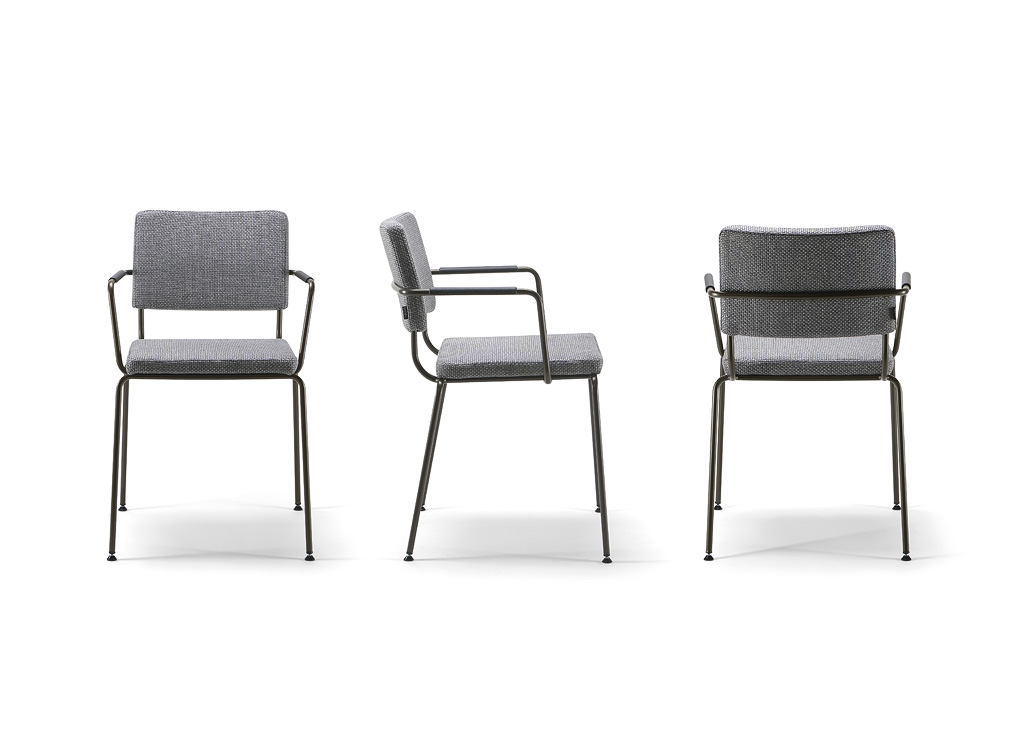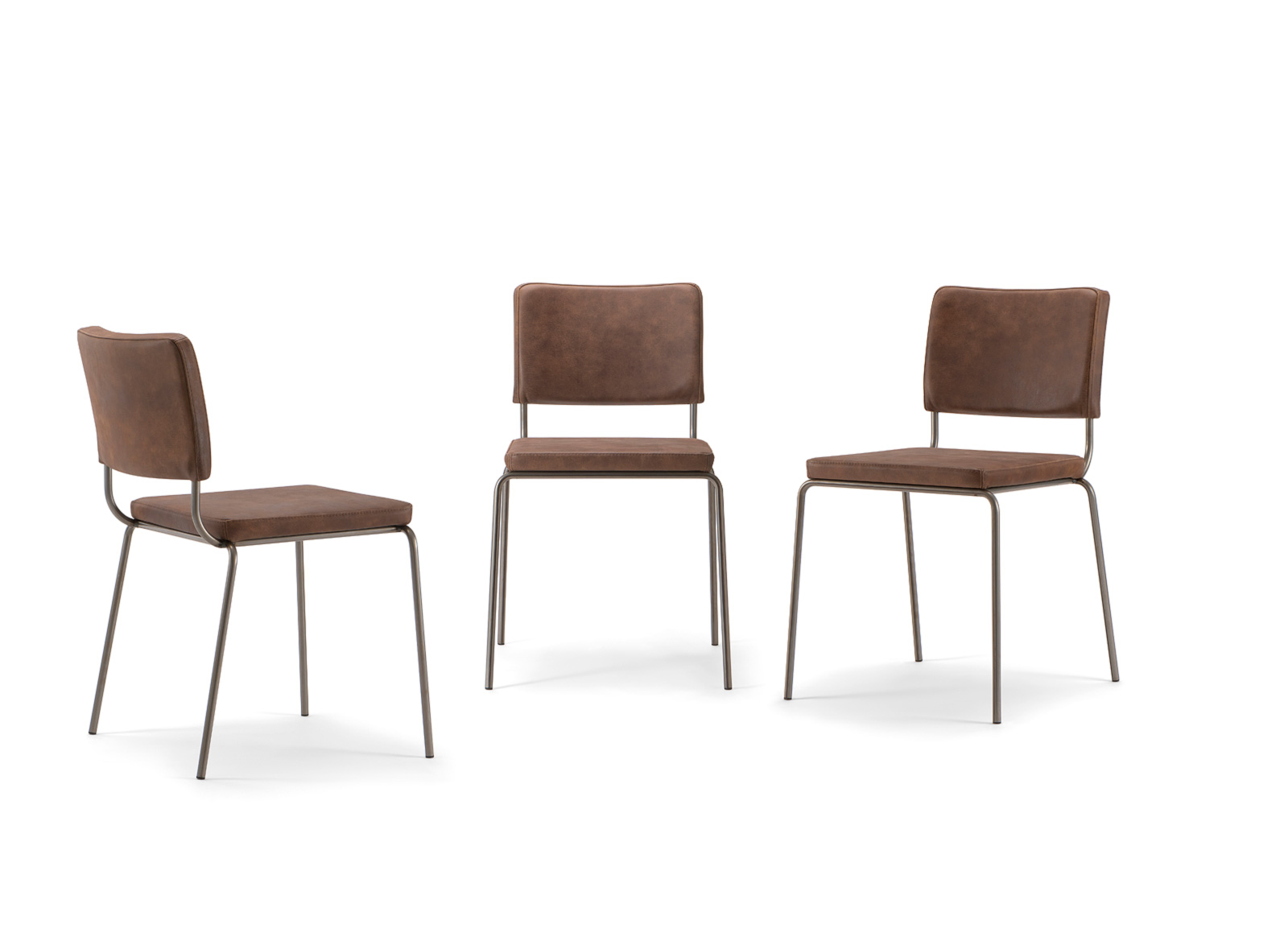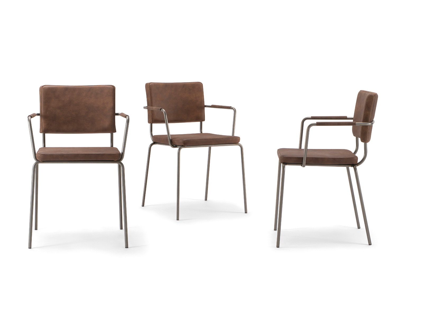 Baza i okvir stolice su izrađeni od kvalitetnog metala, u širokom izboru boja, dok su sjedište i naslon ispunjeni kvalitetnom spužvom visoke gustoće i izdržljivosti te tapecirani u tkaninu ili eko kožu u boju po izboru. Zanimljiv detalj je i da rukohvati mogu imati tapecirani dio kako bi se izbjegao direktni kontakt s metalom.