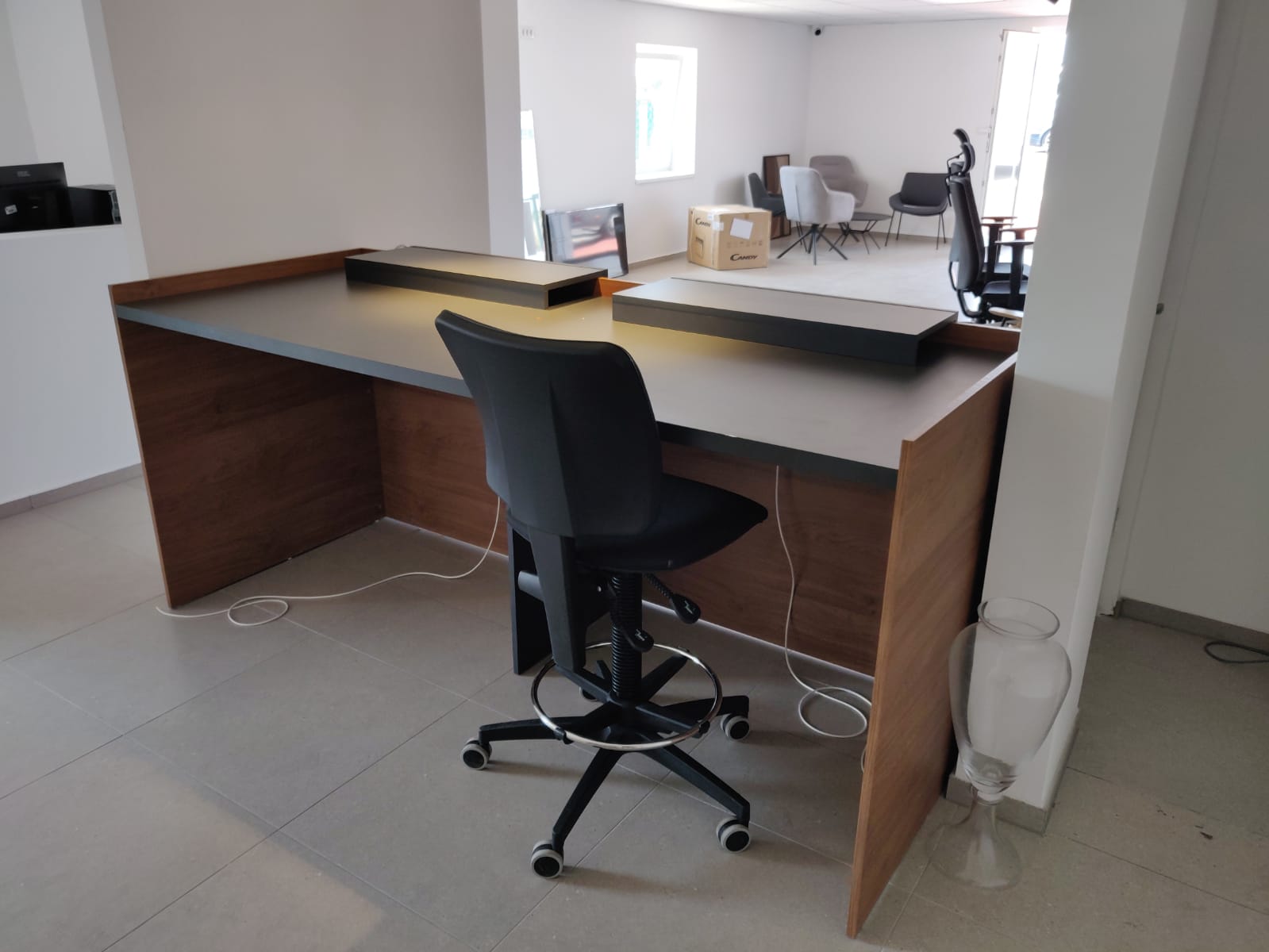 We traveled to Mali Lošinj to deliver and install two custom-made reception desks in the small airport building. The counters are made in a beautiful combination of Kendal oak and anthracite decor and fit perfectly into the renovated space. Discreet LED lighting is installed under the counter tops, which gives extra warmth to the space and enhances the experience at night.