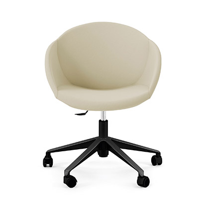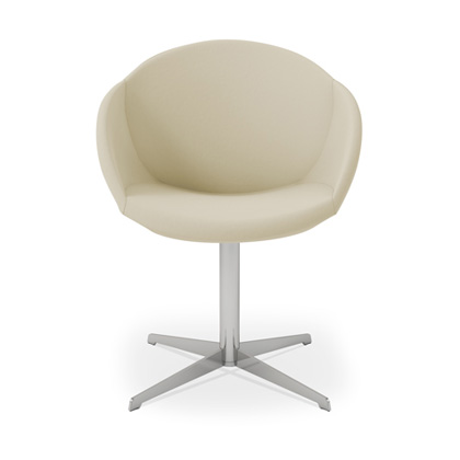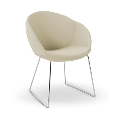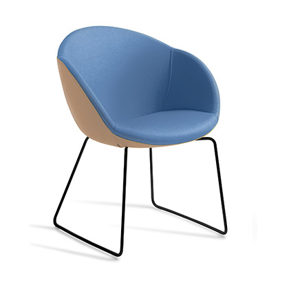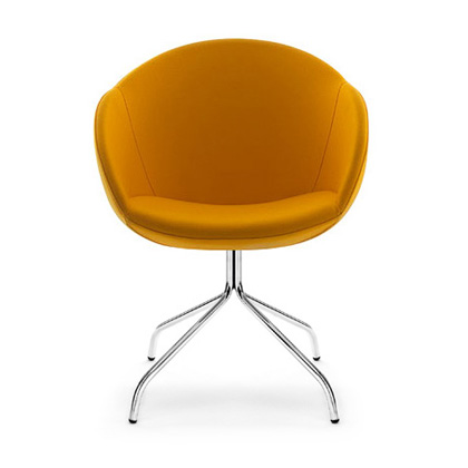 Due to its round backrest and deftly folded forward-facing armrests, the armchair is comfortable to sit on regardless of the height and constitution of the user.