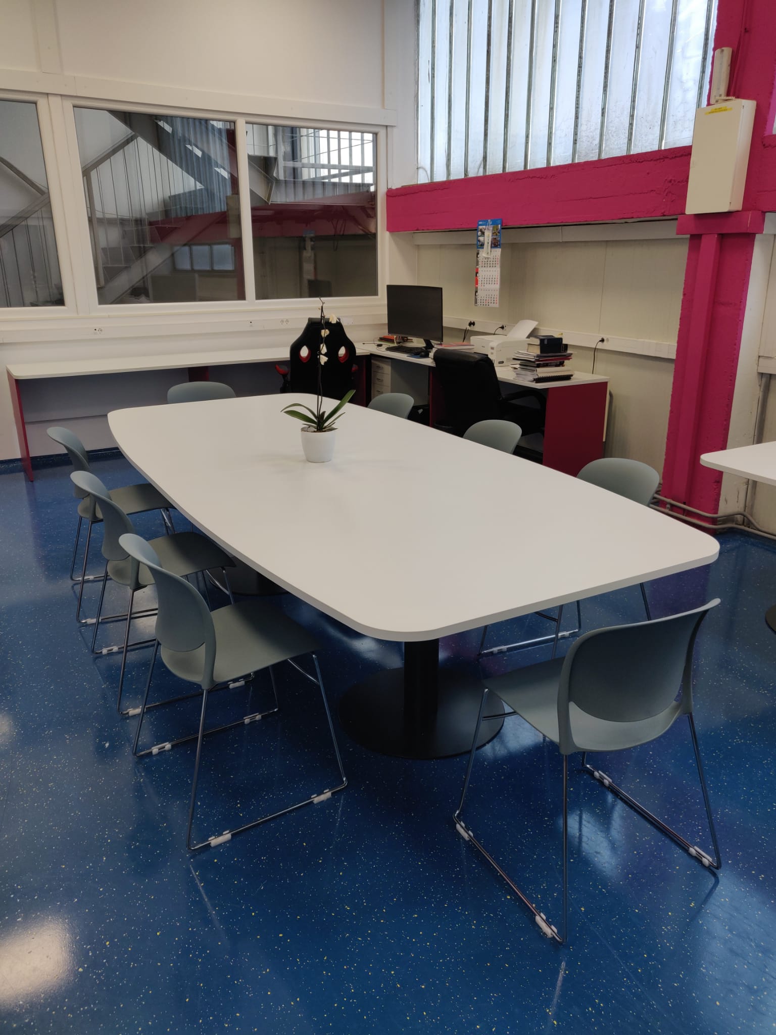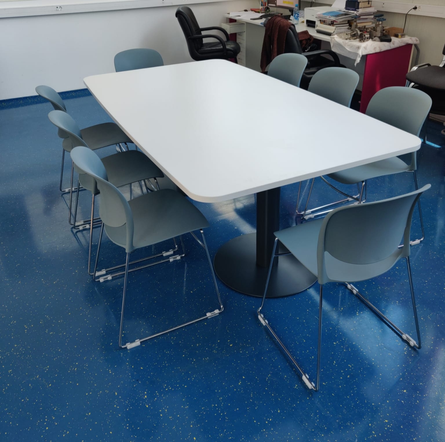 Along with the tables, we delivered O-line conference chairs, very beautiful and modern gray-blue color.