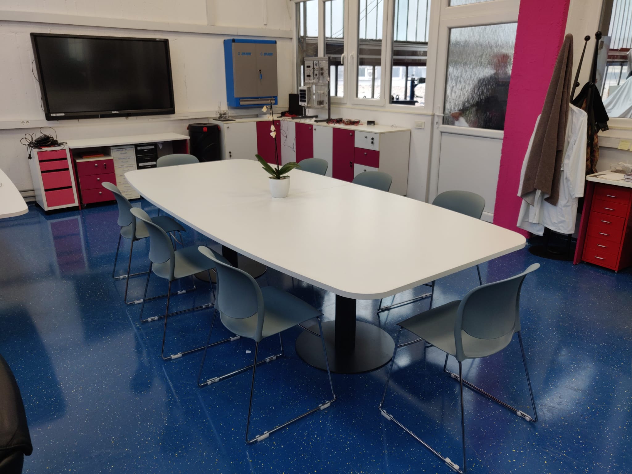 Two custom-made white conference tables for the Faculty of Mechanical Engineering in Zagreb...