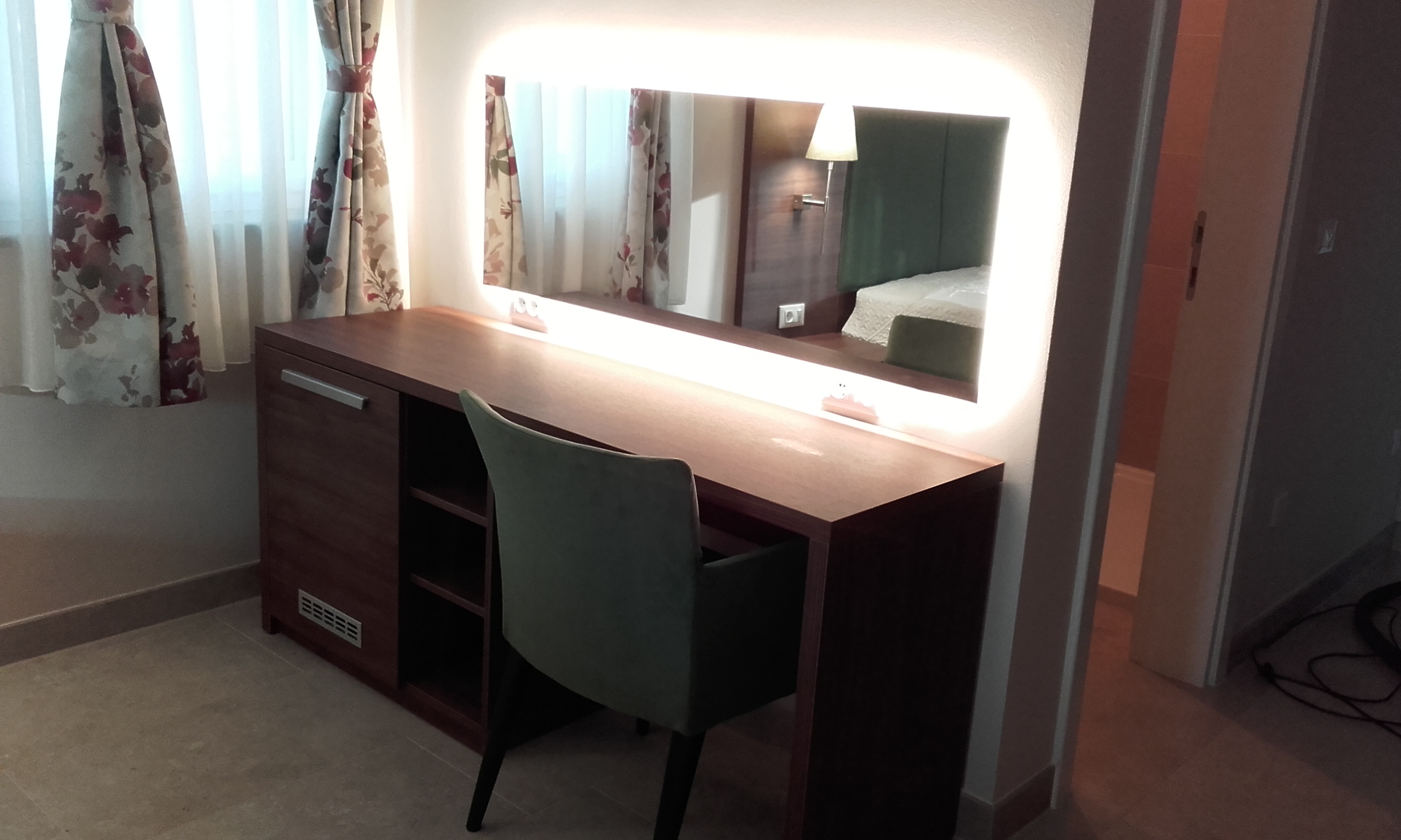 Within a few months, we completed a project of equipping hotel rooms, corridors, staircases and reception areas, which covered the phases from the preliminary design through the execution of electrical, painting and ceramic works, to the production, delivery and installation of furniture and equipment.