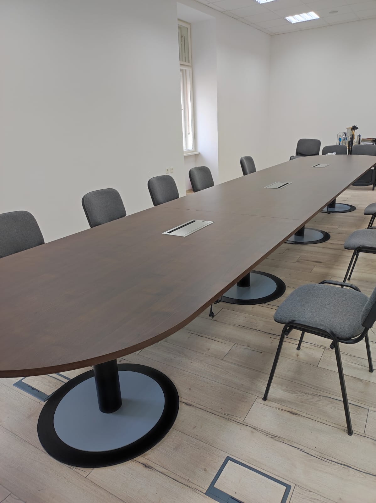 We accepted the challenge of equipping the conference hall of Jadrolinija's headquarters in Rijeka. We refreshed the traditional interior with a modern custom-made conference table, with as many as 3 electrification connections and round legs in two-tone tones.