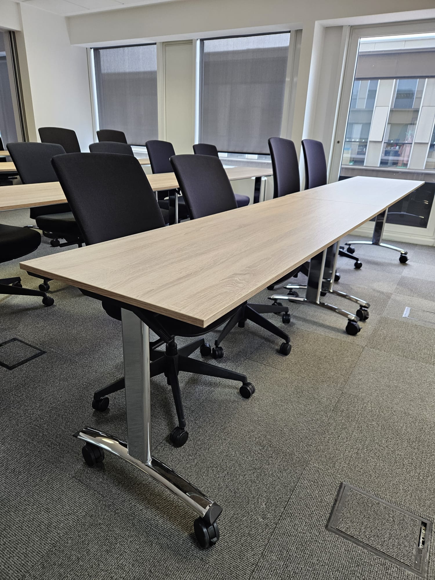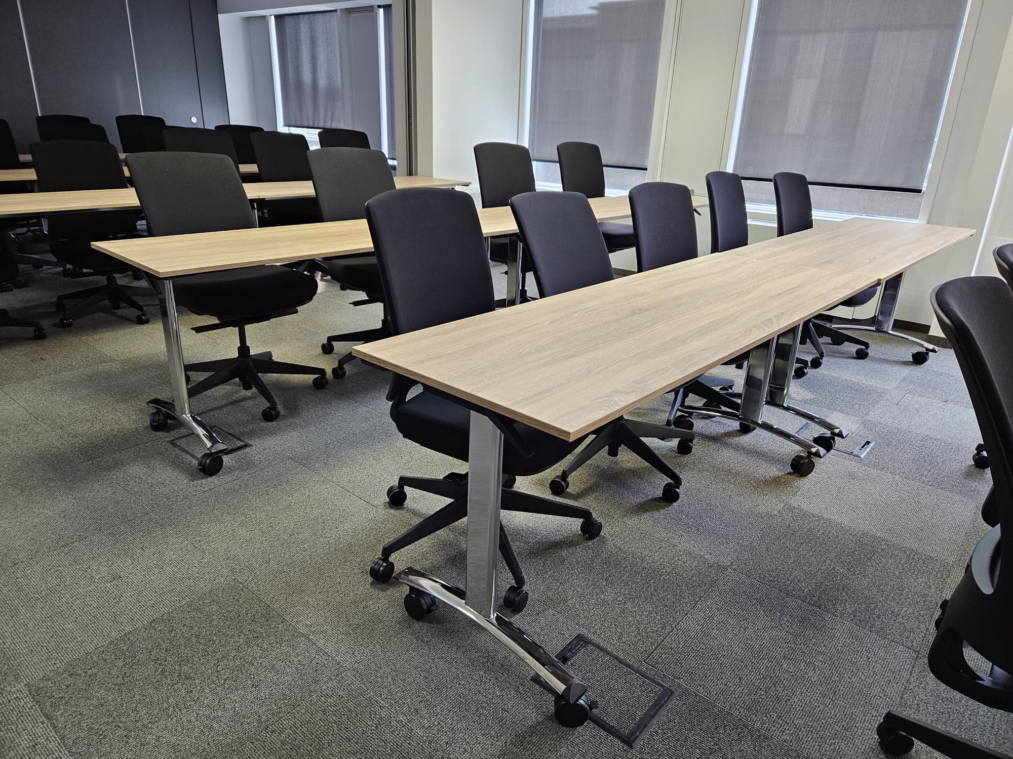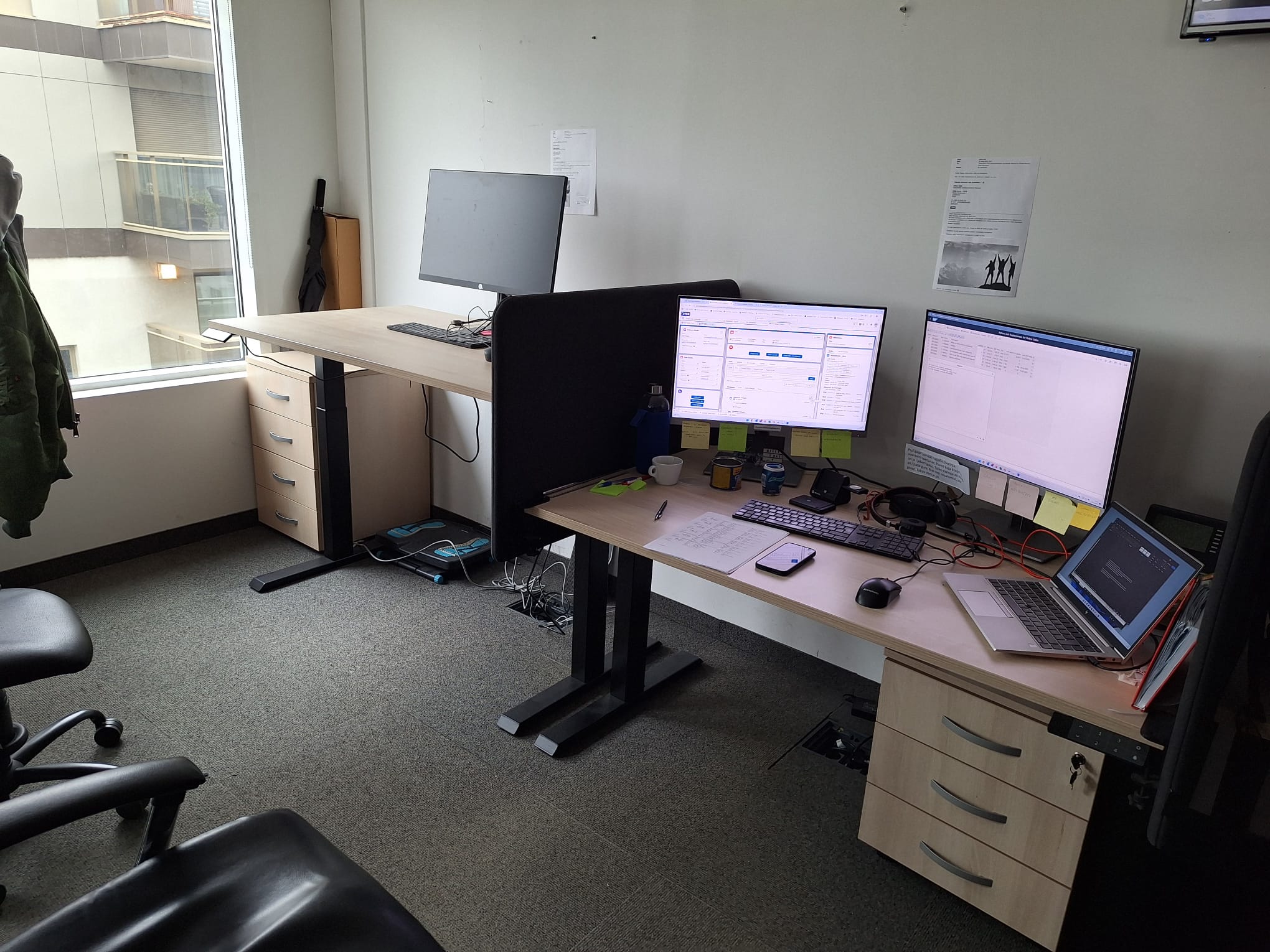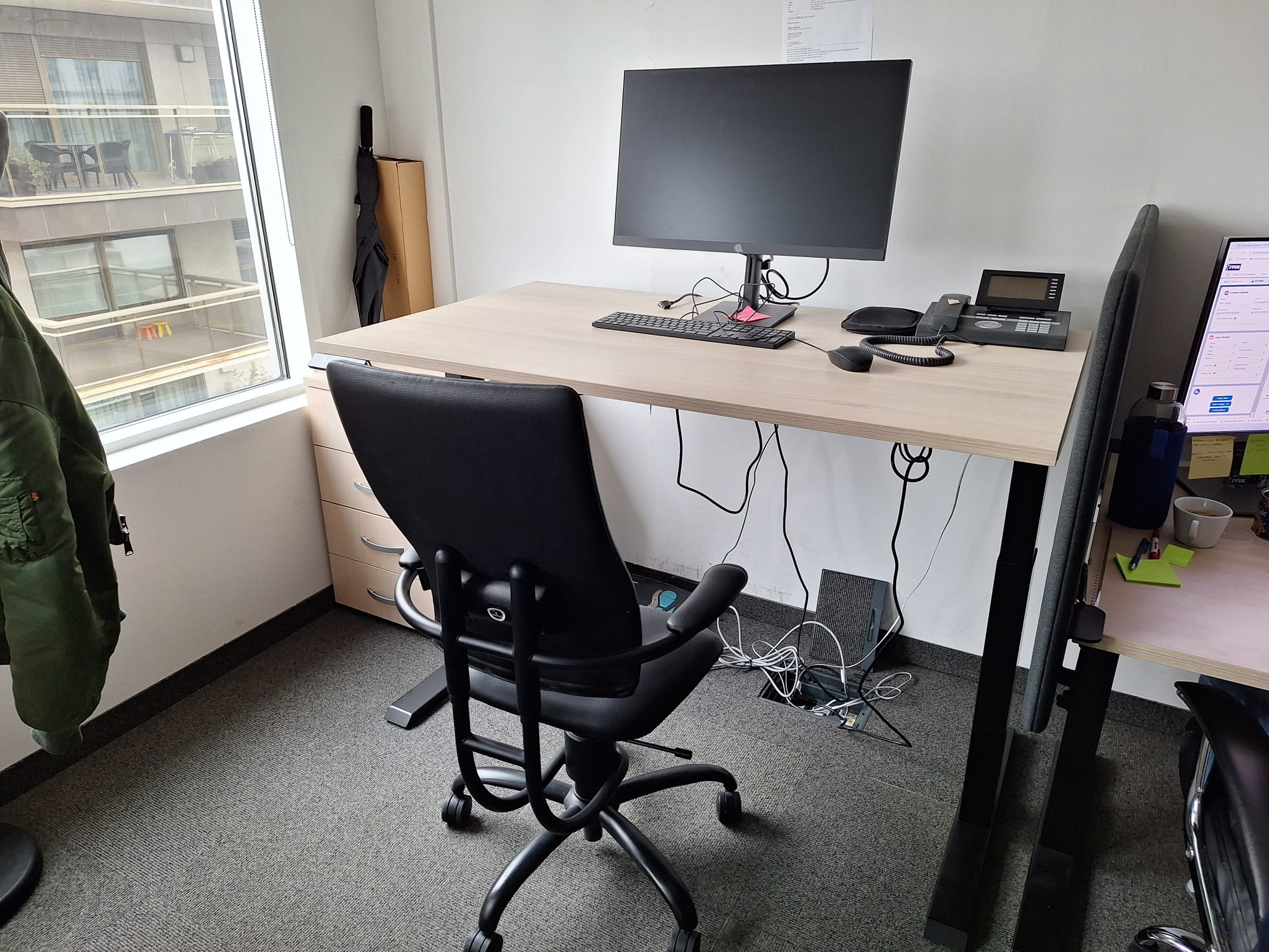 Next, we installed electric lifting tables with a memory display for the customer support team and other employees. The client wanted to leave the existing table tops, which we efficiently and quickly dismantled from the old bases and placed on new, elegant black legs.
