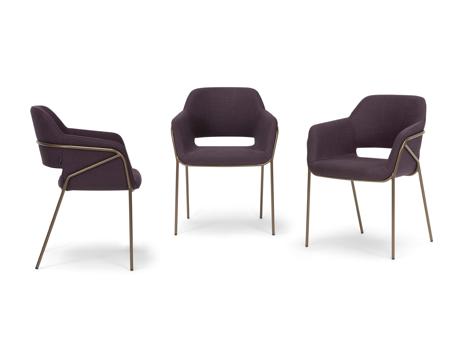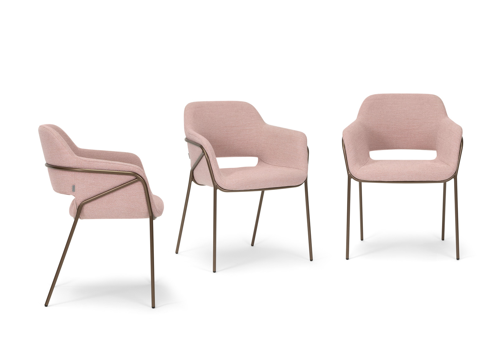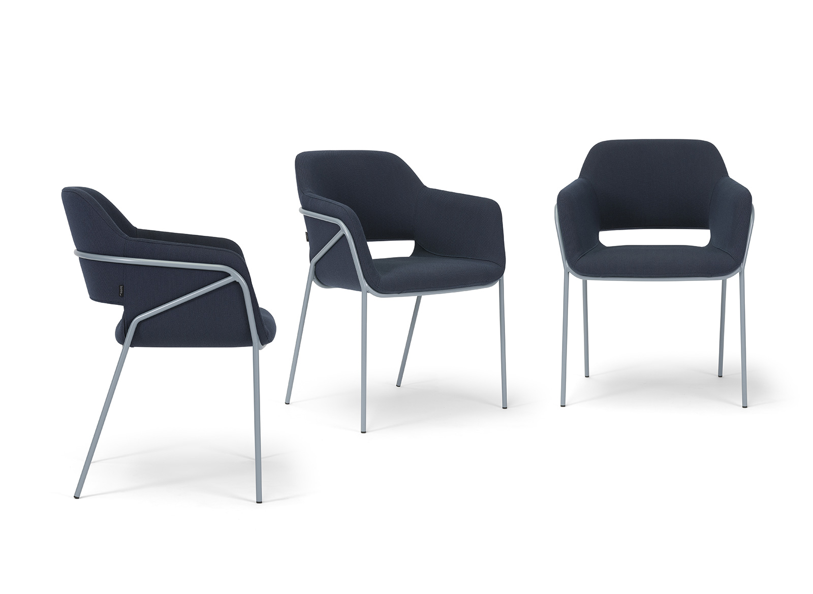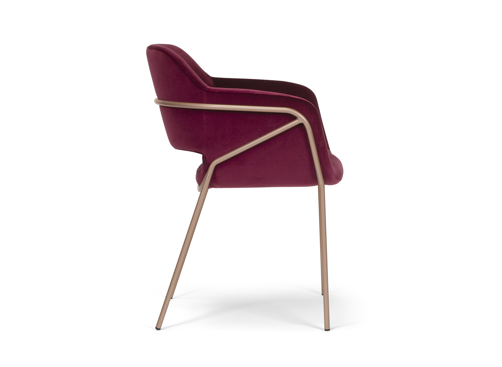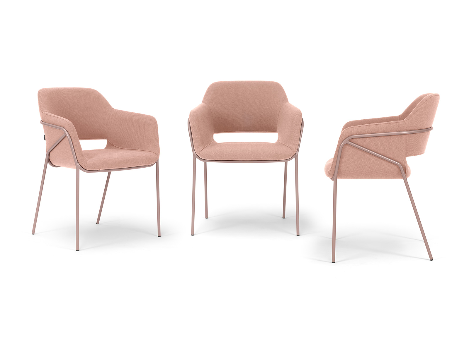 Magda is suitable for various environments, from the catering sector to public spaces and executive offices. It can be upholstered in a wide range of fabrics or leathers, and it is also possible to choose from many different colours of metal legs and frames, making it suitable for any interior and purpose.