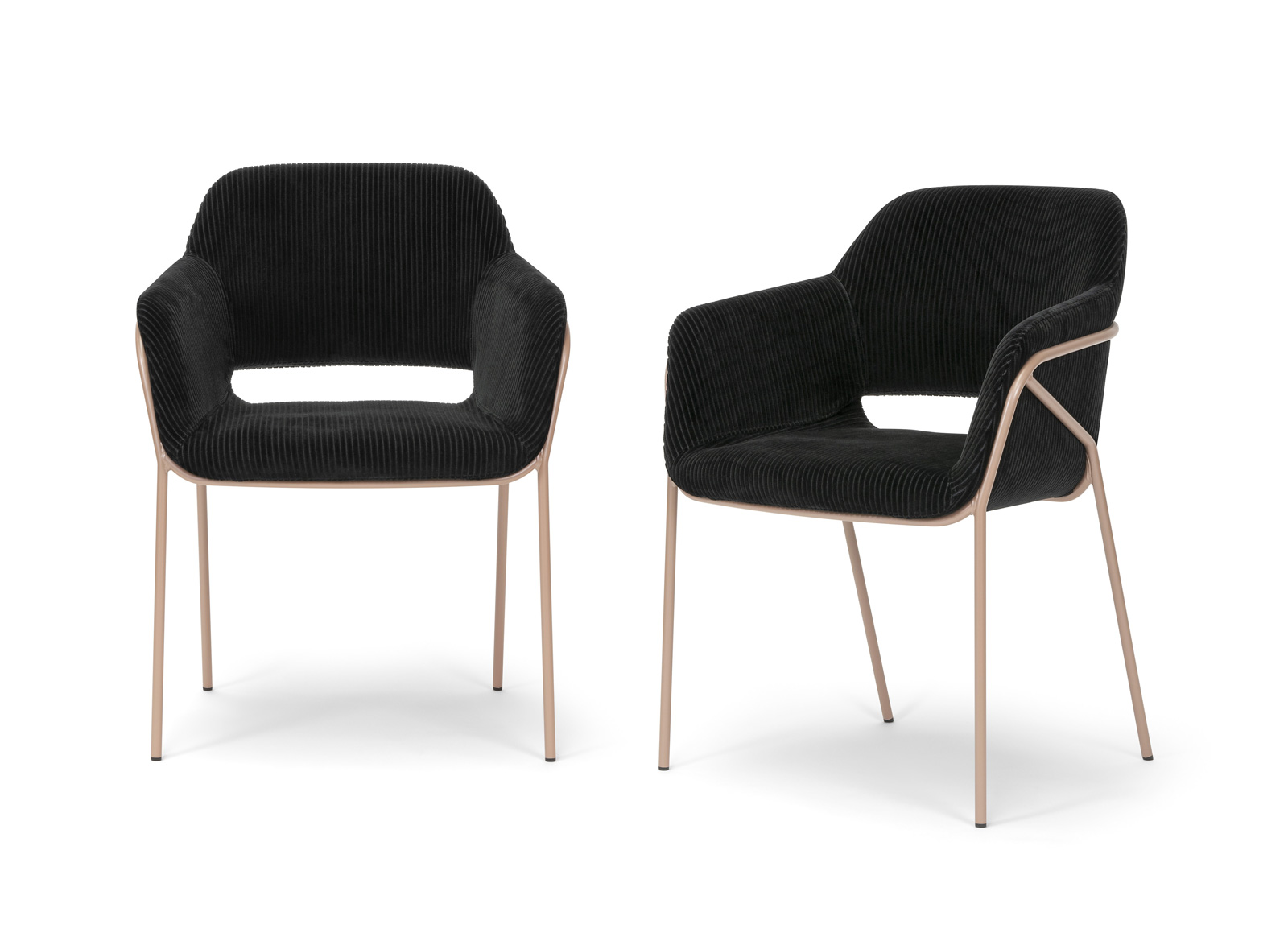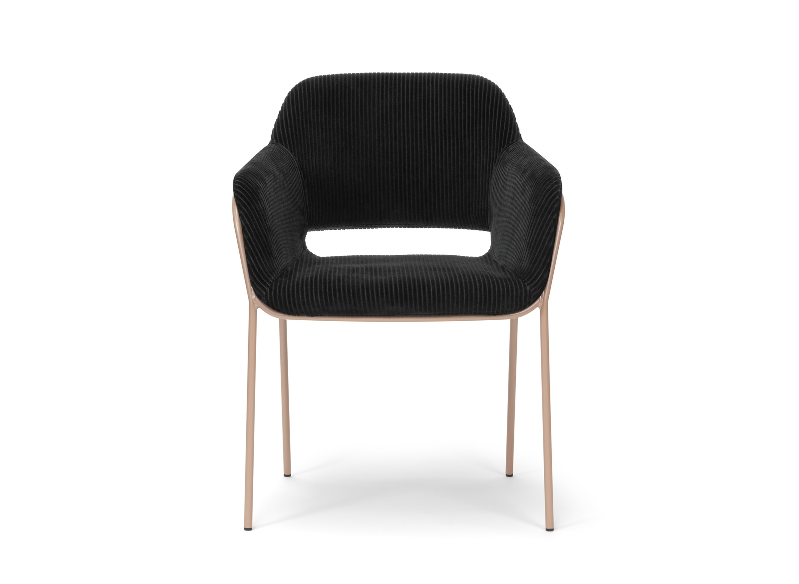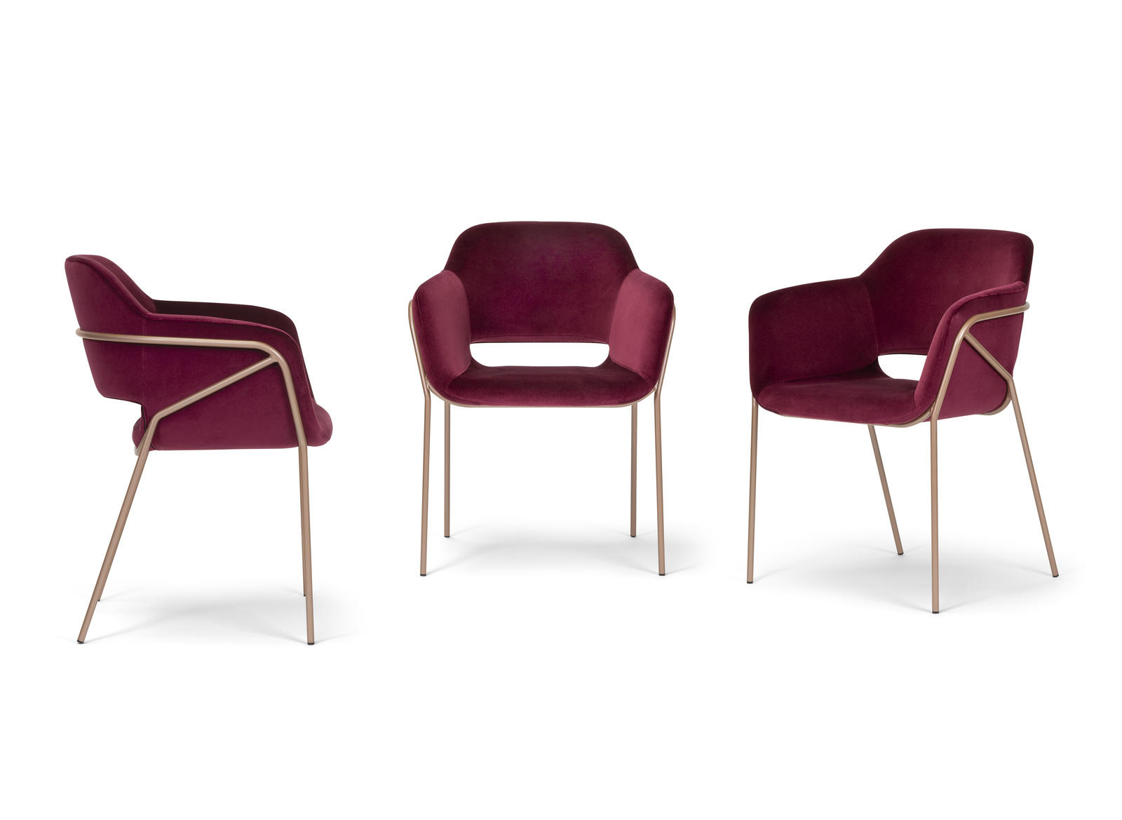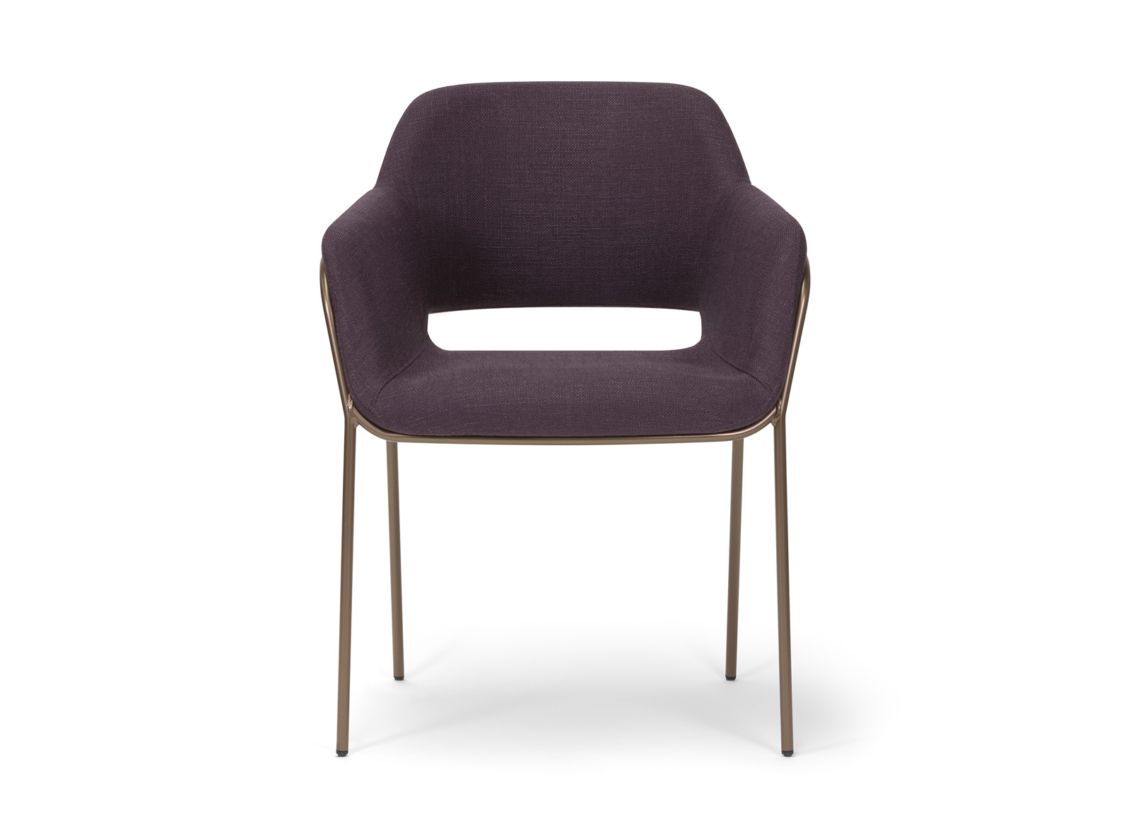 Magda is suitable for various environments, from the catering sector to public spaces and executive offices. It can be upholstered in a wide range of fabrics or leathers, and it is also possible to choose from many different colours of metal legs and frames, making it suitable for any interior and purpose.