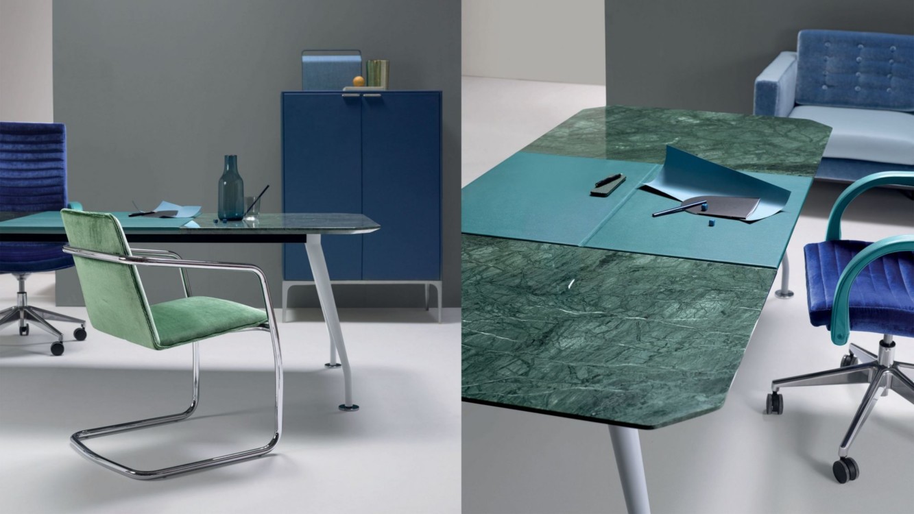 With marble or marble imitation, you can cover walls or floors, incorporate it into countertops and reception areas, refine your conference room with a marble table, beautify the room with details, or treat yourself to a modern kitchen accented with marble elements.