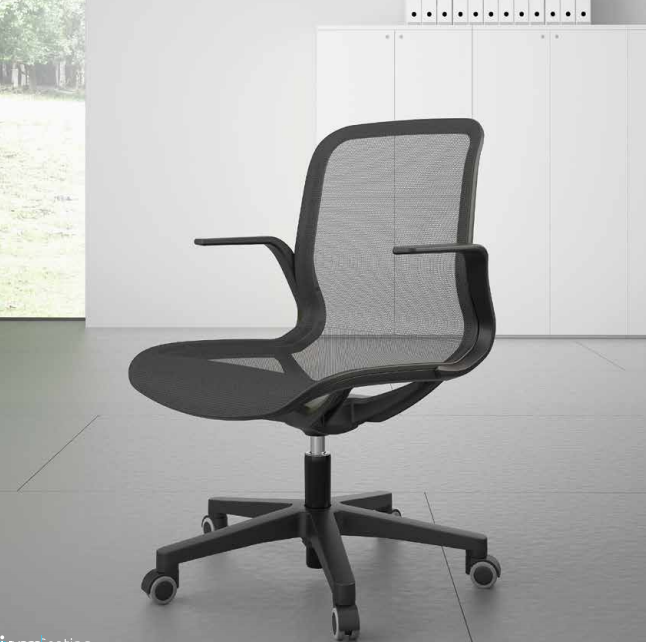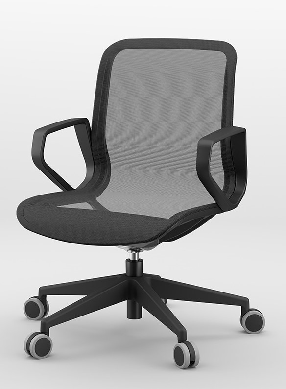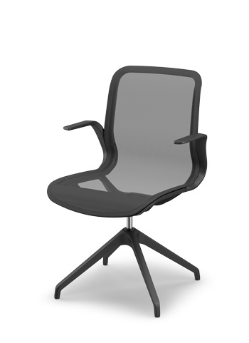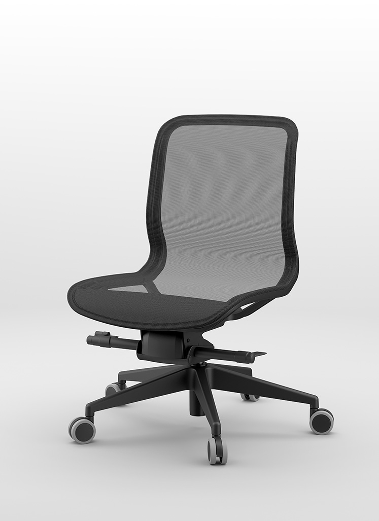 The backrest and seat are made as one unit with a double, elastic, black mesh. All other parts of the chair are also black, thus emphasizing its elegance and airiness.