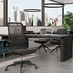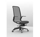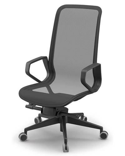 The backrest and seat are made as one unit with a double, elastic, black mesh. All other parts of the chair are also black, thus emphasizing its elegance and airiness.
