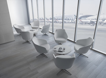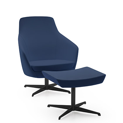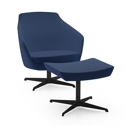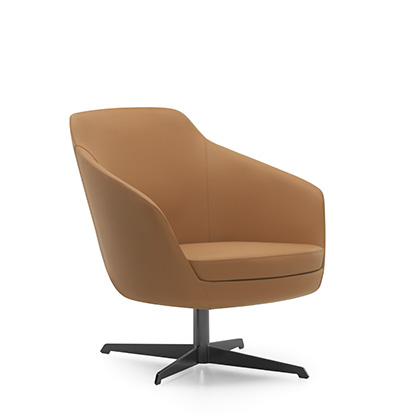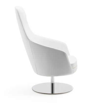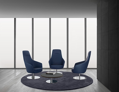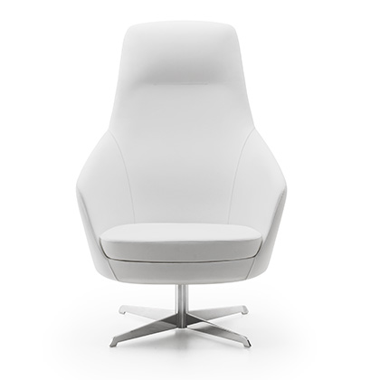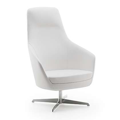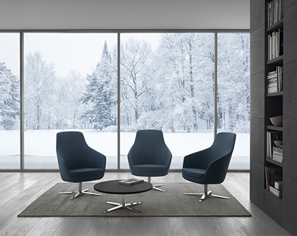 Its rounded line with three backrest heights, a wide range of fabrics and a choice of several types of bases, allow it to be easily adapted to any space and taste.