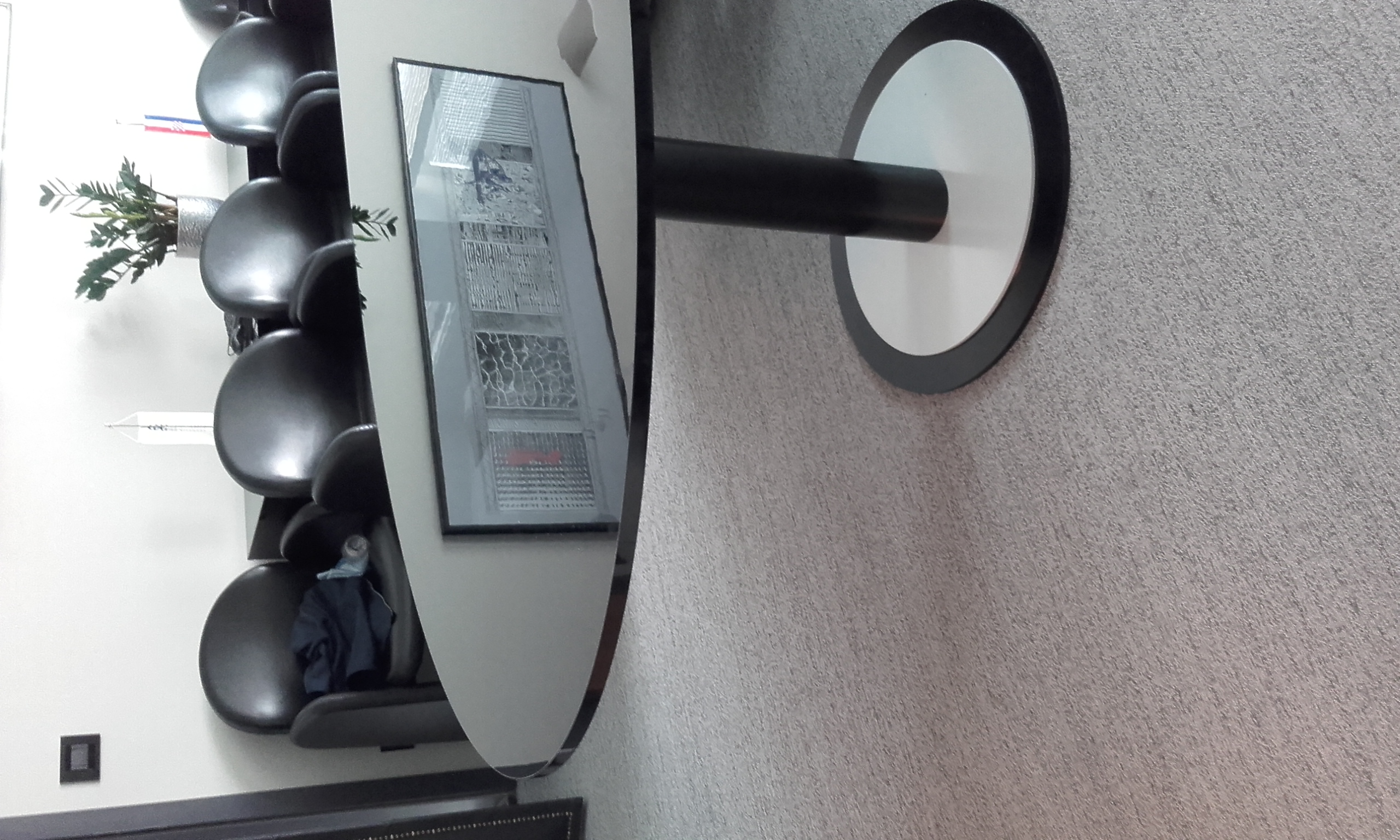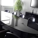 We have complemented the executive desk of the VELA line, a rounded sail shaped worktop, with an oval conference table and high quality and beautiful Steel office chairs with high and low backs.
