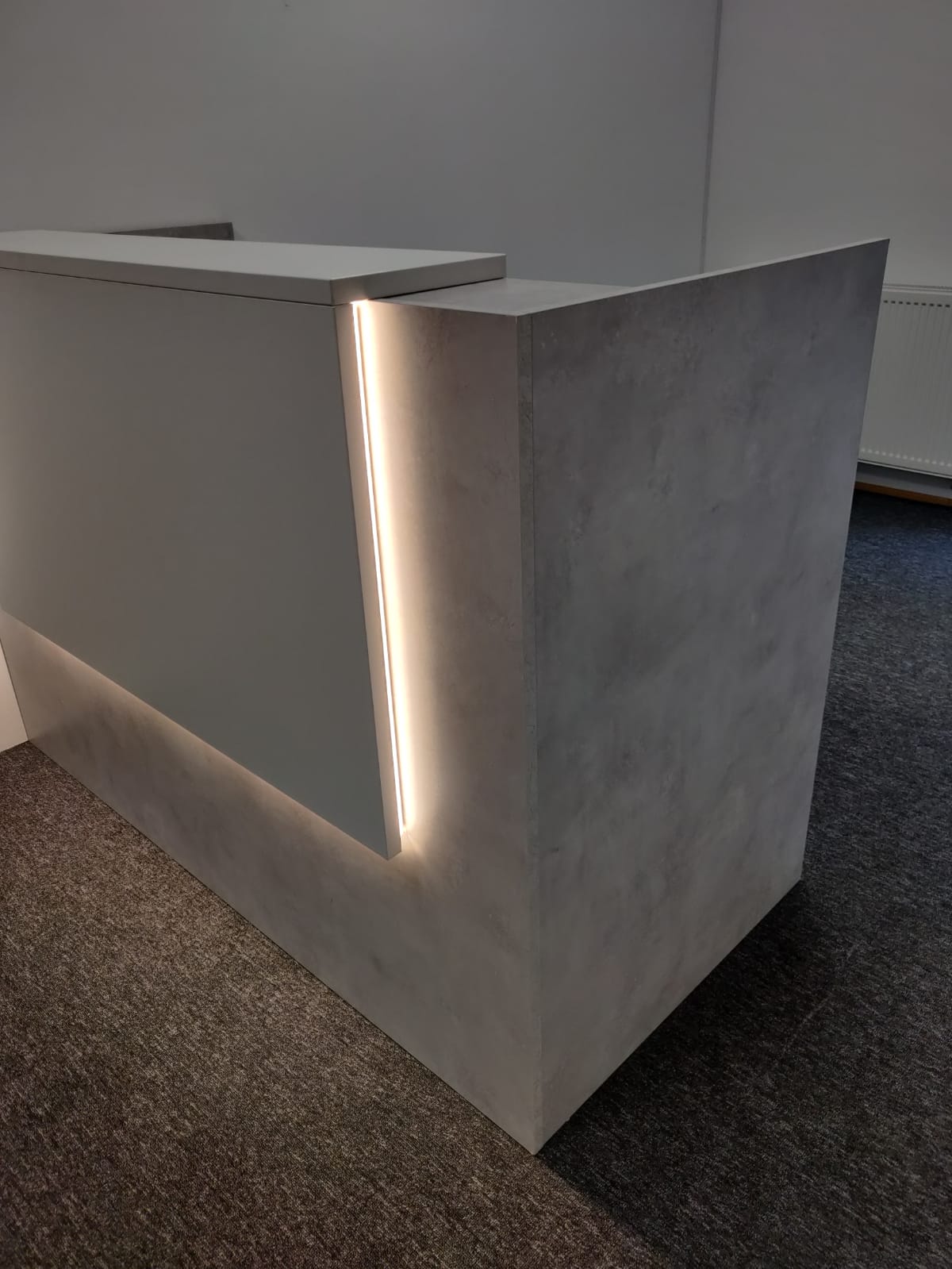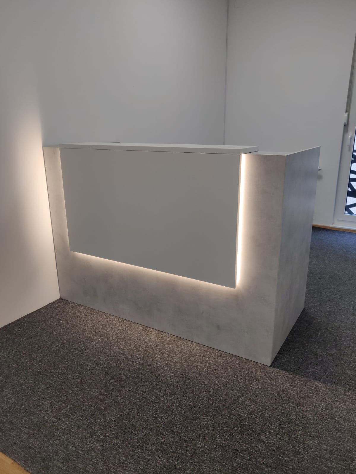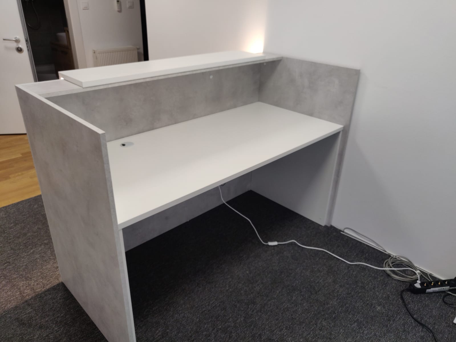The dimensions of the counter are W160 x D75x H110cm, and the desk is 155x70cm. There is an opening for cables on the worktop, and all wires and cables are hidden from plain view.