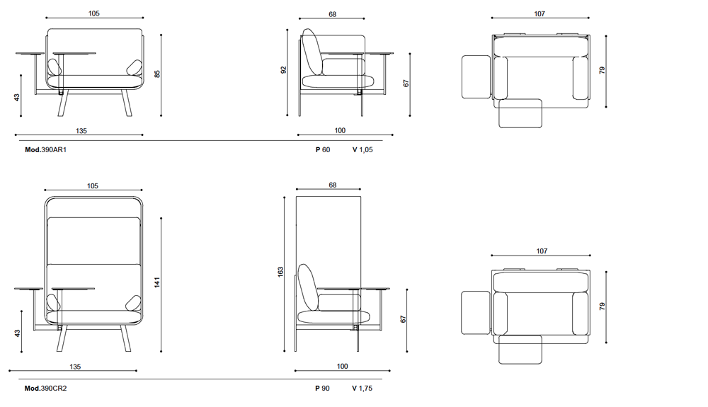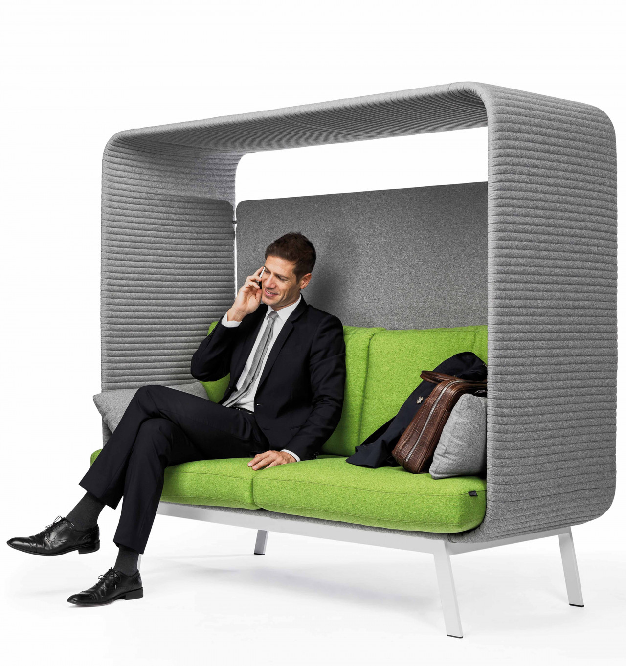 It has the ability to absorb noise up to 15 dB, and it is also possible to mount a rotating table for a laptop, tablet or other things. It also has an integrated USB slot for charging a laptop or mobile phone. Available as a one-seater or two-seater and can be ordered without a "roof".
