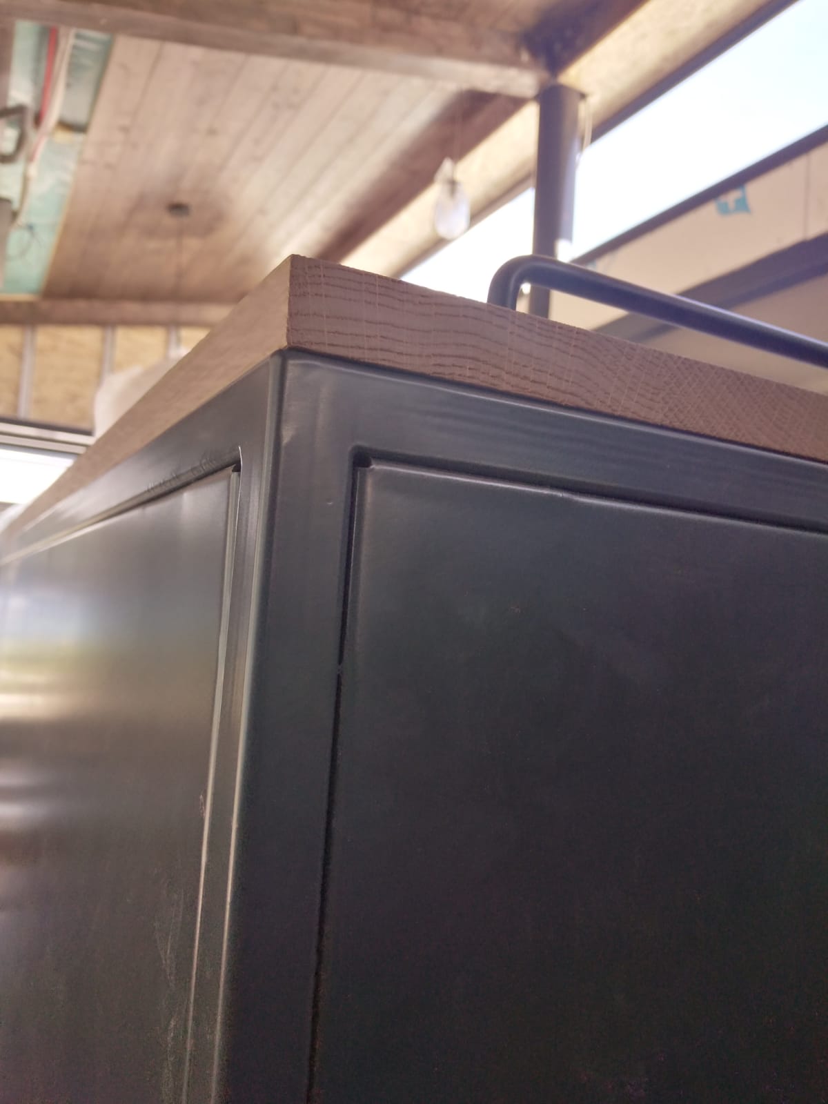 The combination of different materials such as metal and solid wood and composite board and metal bars, was a great challenge for the design and production itself, but the result is excellent.