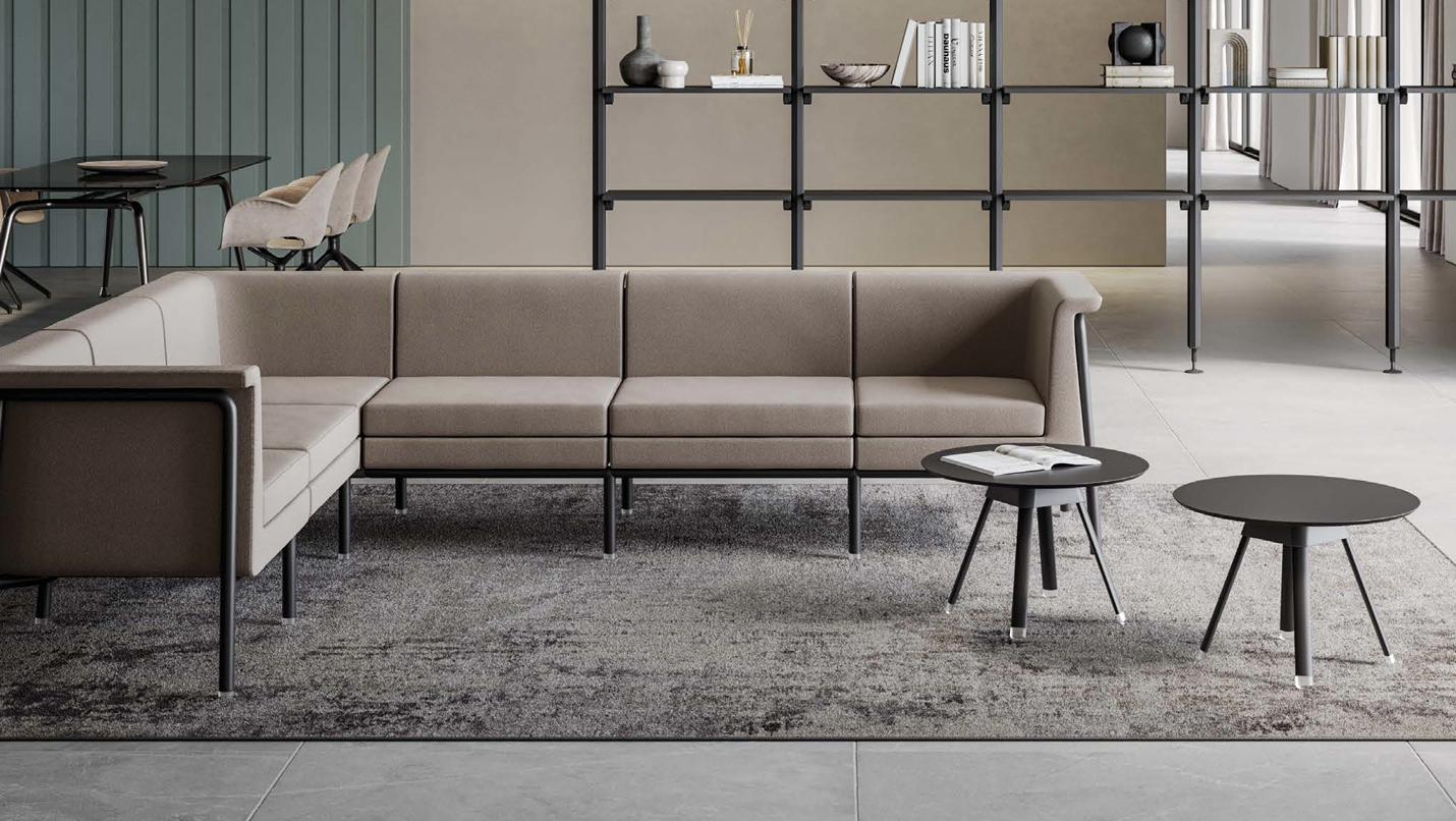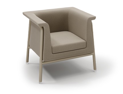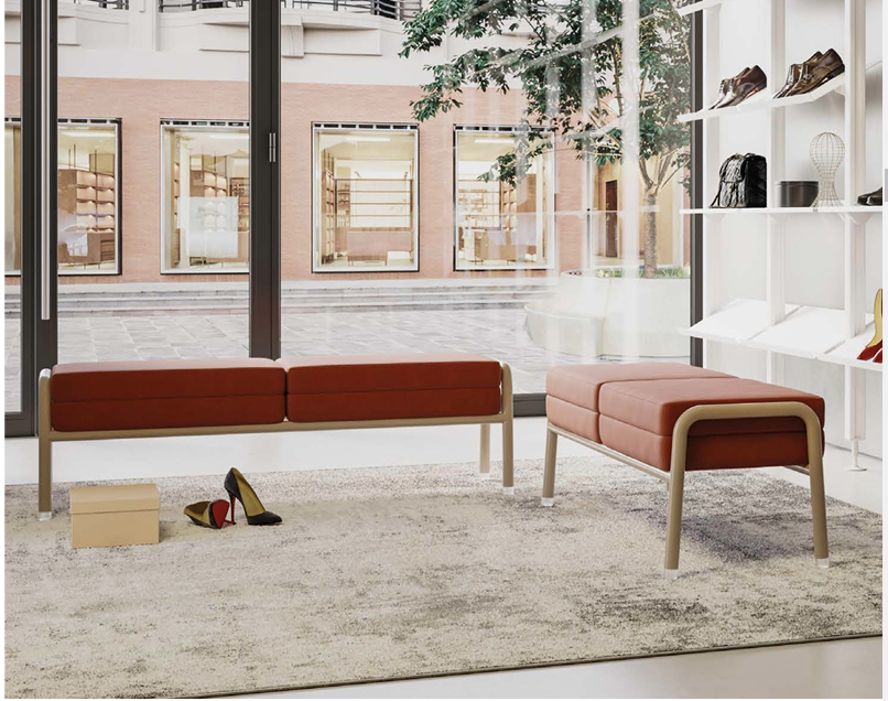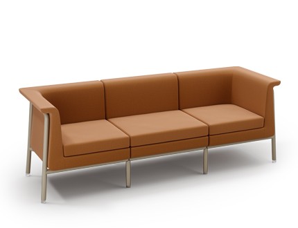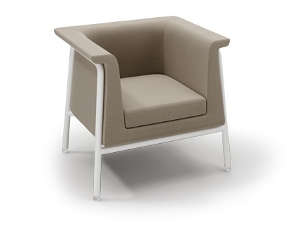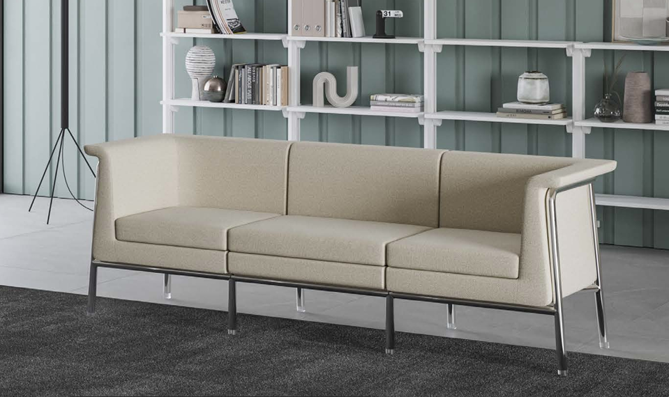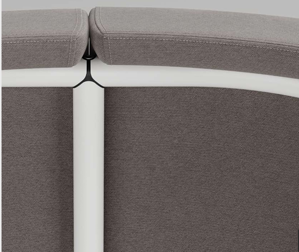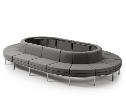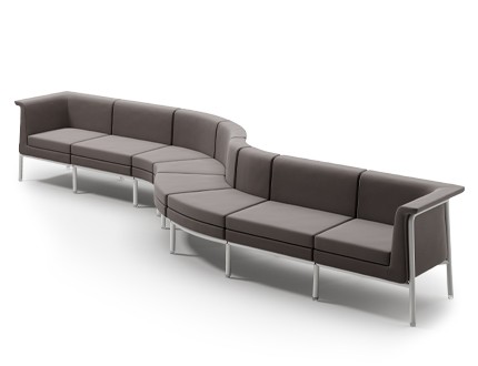 Free-standing armchairs, a two-seater and an upholstered bench are available, but they can also be combined into various compositions that include a corner element or rounded single-seaters, using patented connections (clips).