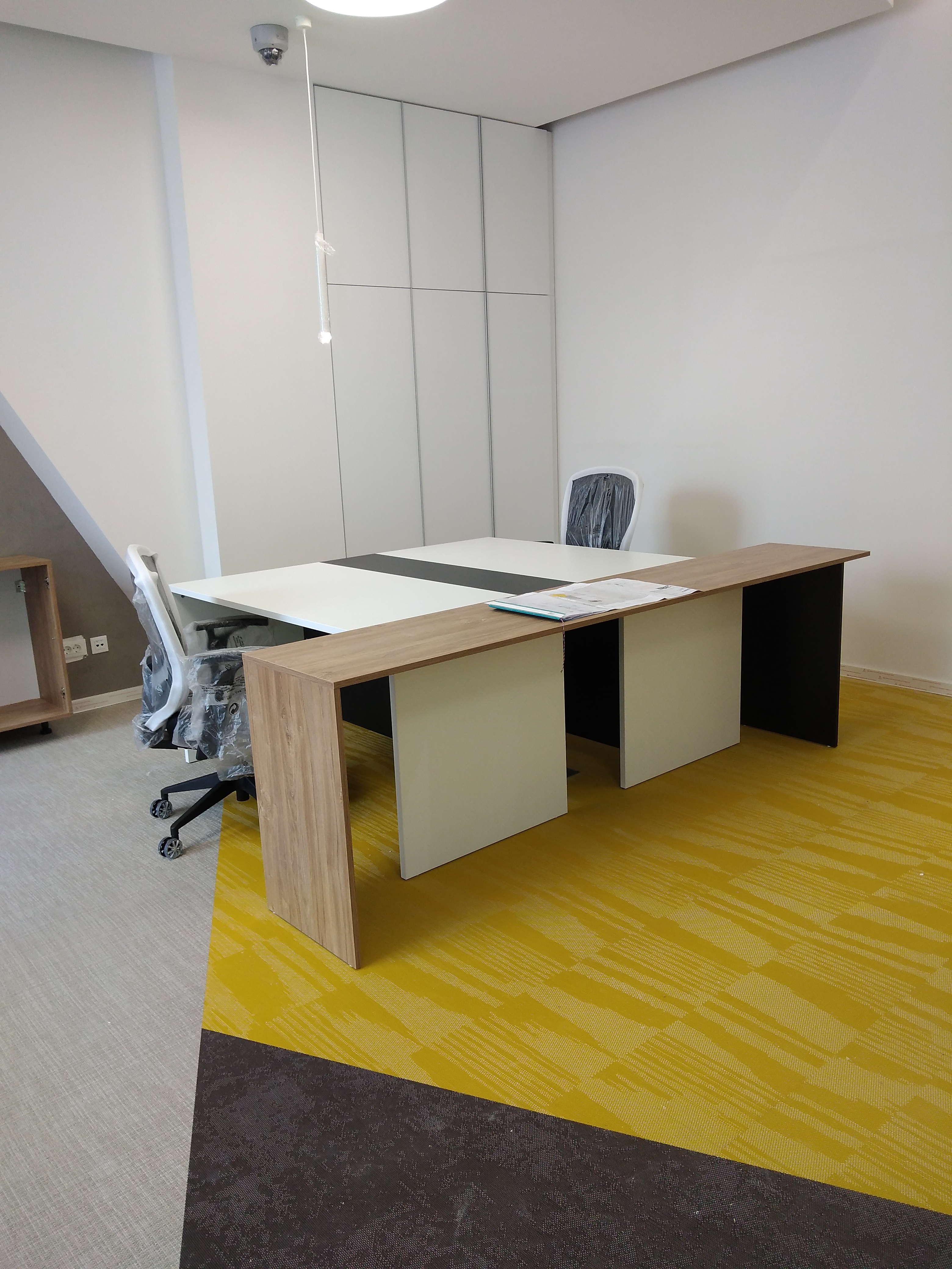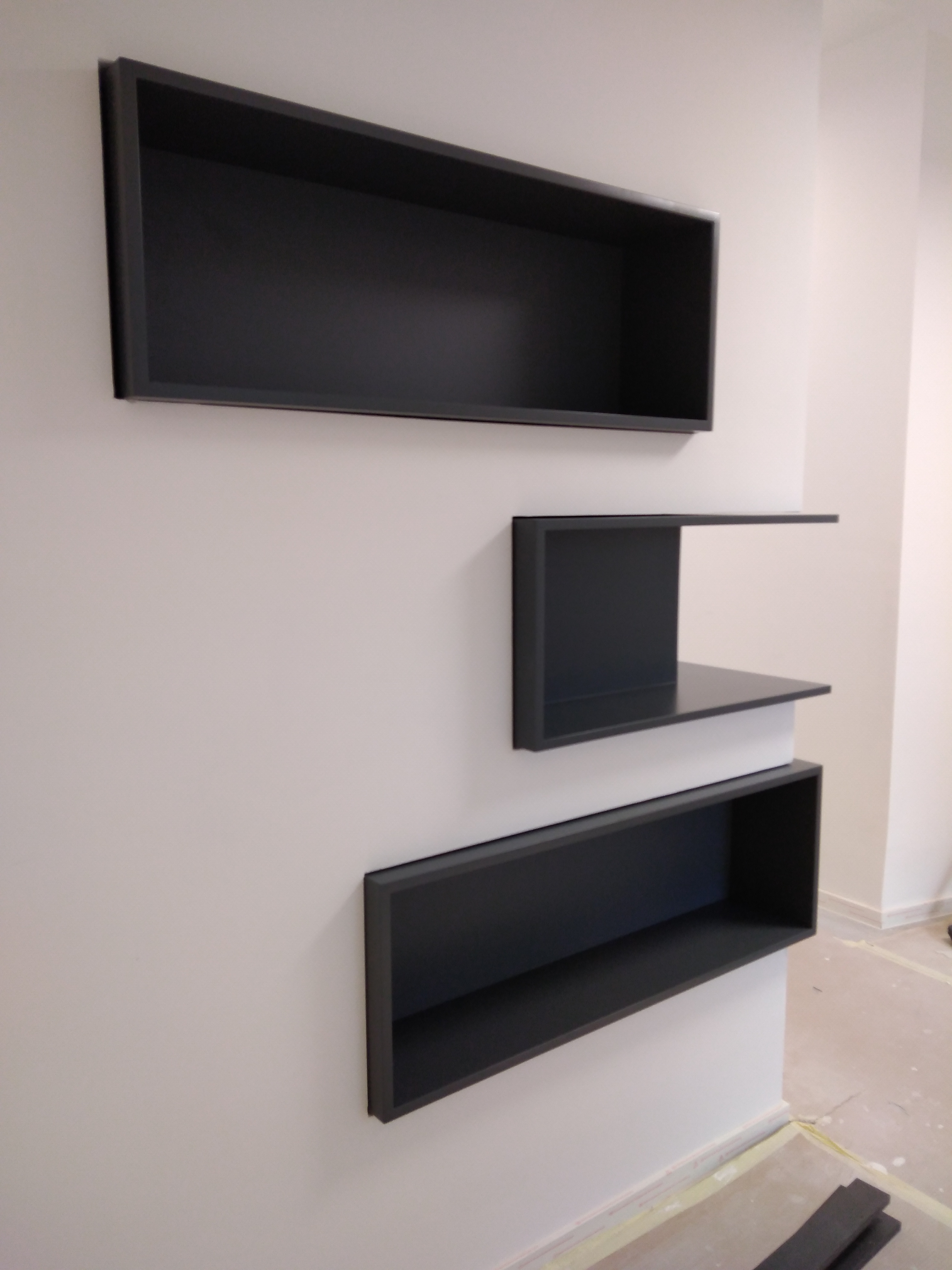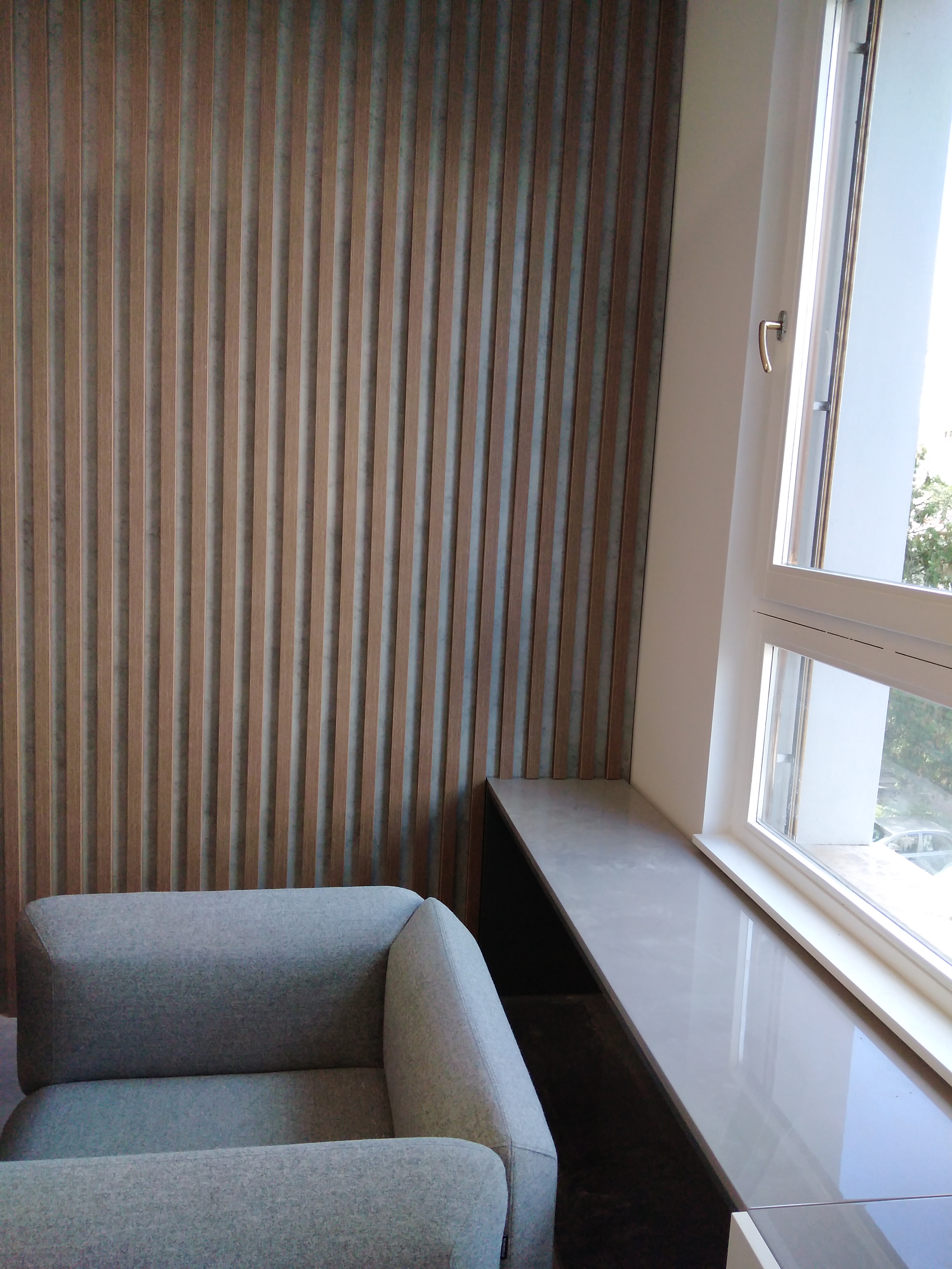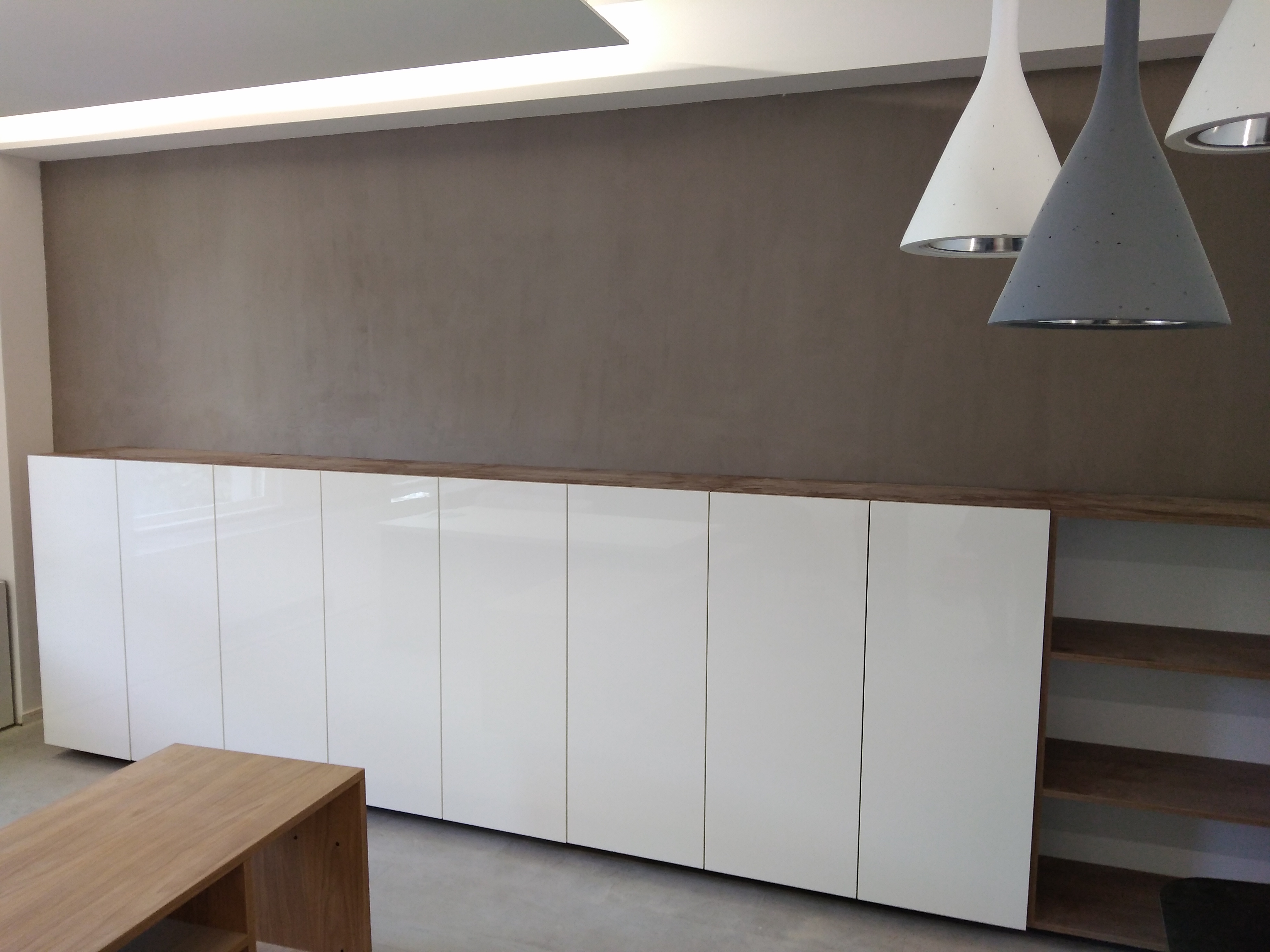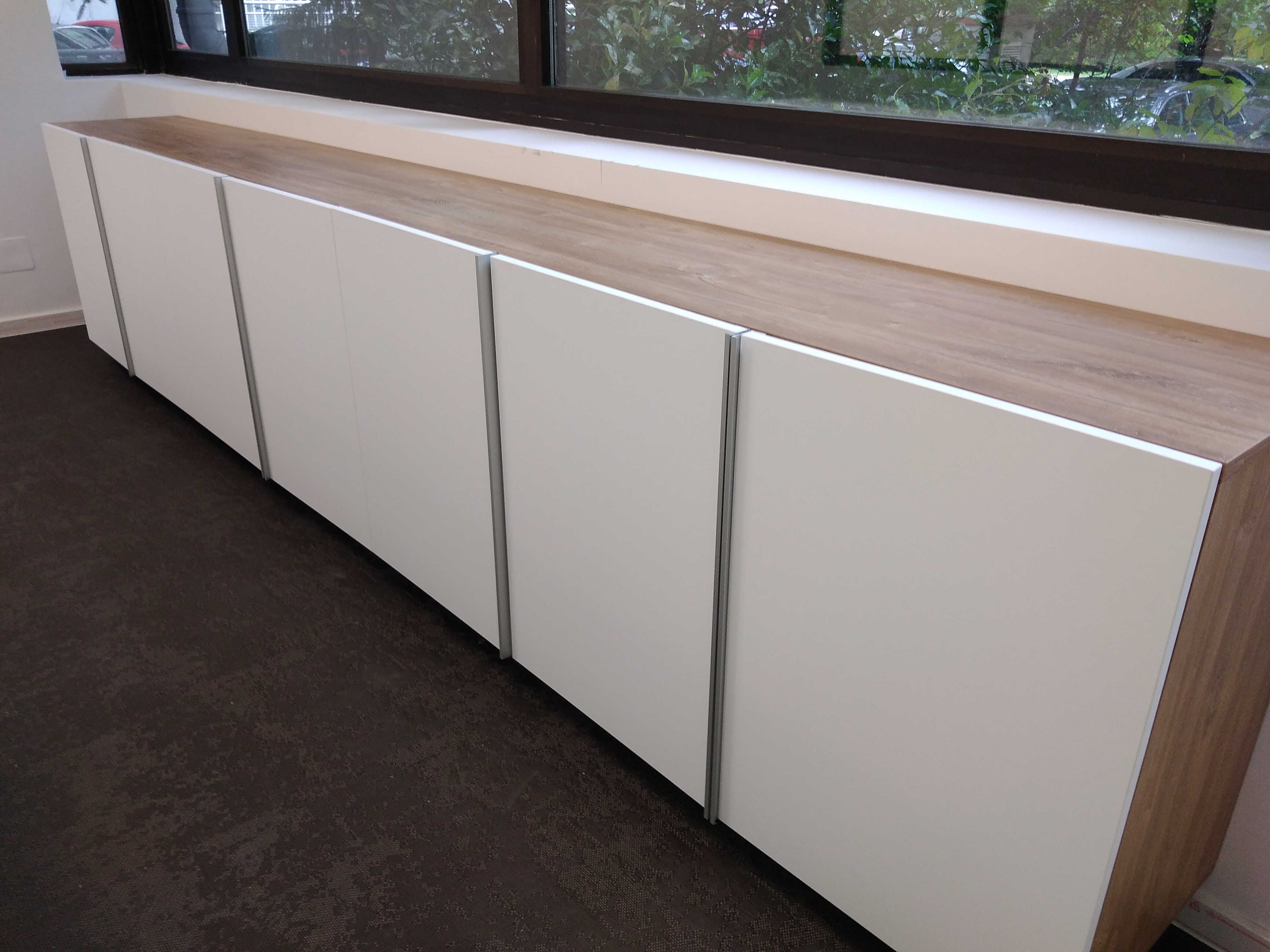 The furniture was made according to the architect's project and included worktops, built-in cabinets, electrical cabinet coverings, wall coverings and fan coil device coverings, cabinets...