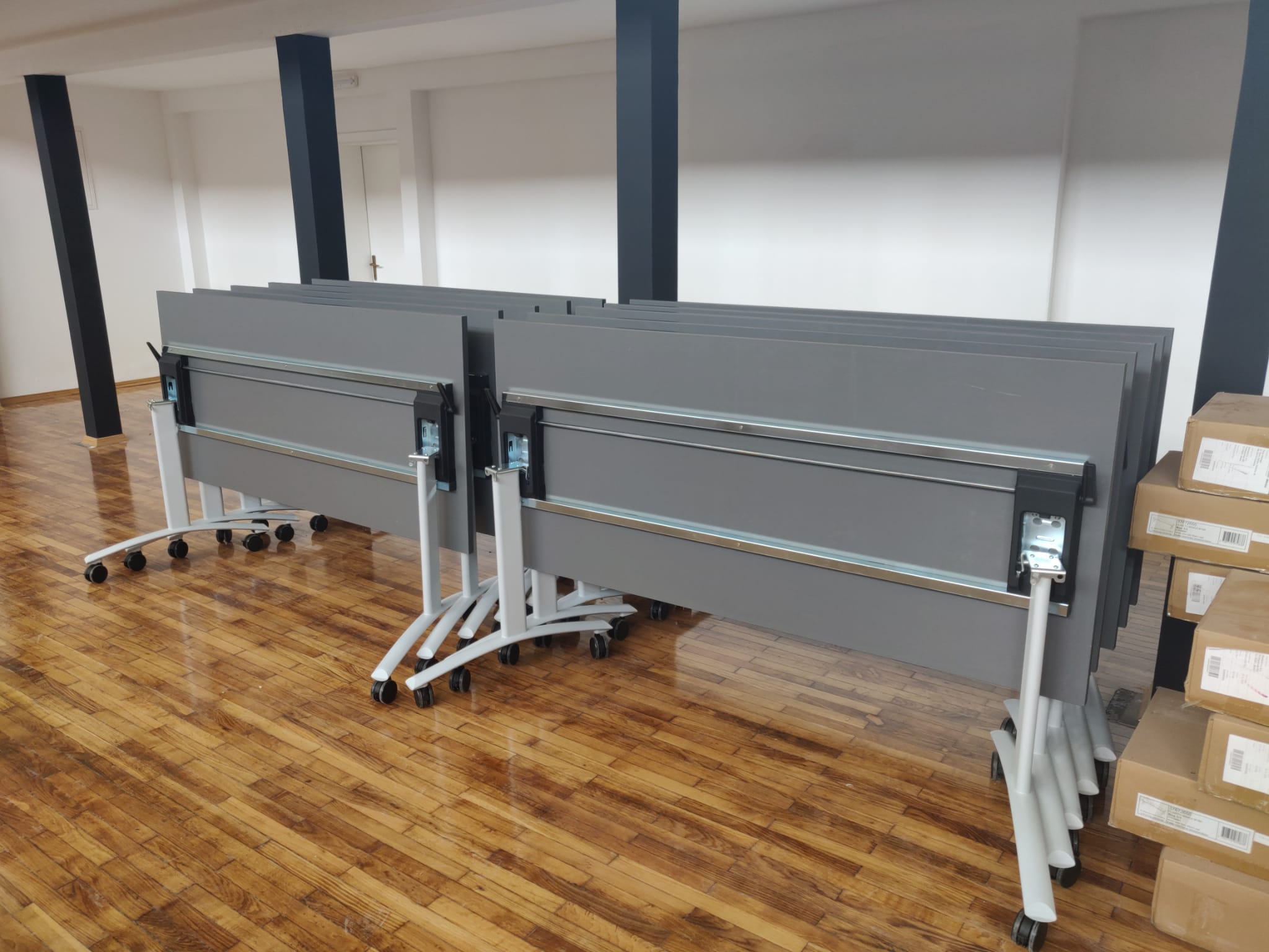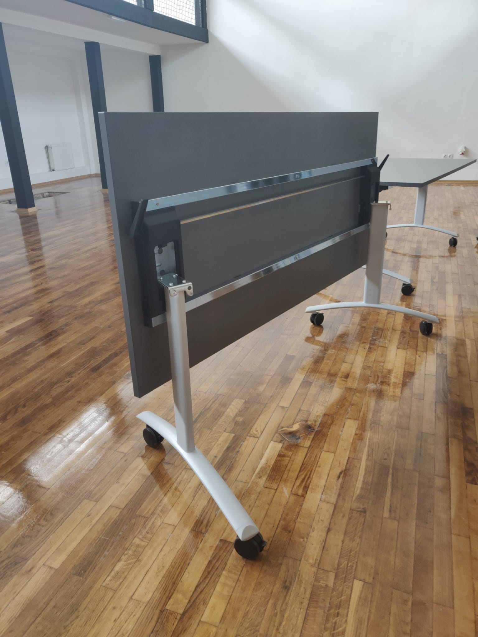 The wheels on the tables enable quick and easy movement and storage of the tables, and they also have a brake (stoppers).