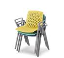Sjedište i naslon su izrađeni od visokokvalitetne i izdržljive plastike, sa zanimljivim perforacijama radi prozračnosti. Velik izbor boja na odabir, kao i mogućnost odabira sklopive pločice za pisanje te fiksnih rukohvata.