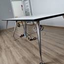 Elegantani stol za 10 konferencijskih stolica napravljen je kao kombinacija bijelog bijelog dekora i kromiranih nogu modernog dizajna. Ploču stola smo porubili crnom trakom te ugradili dva seta elektropriključaka napravljenih prema posebnim specifikacijama. Unutar svake aluminijske kazete je drugačija elektrokonfiguracija s čime smo maksimalno zadovoljili sve potrebe za umreženjem stola. Uz stol smo isporučili konferencijske stolice Magix, u mentol zelenoj i bljedo plavoj tkanini...