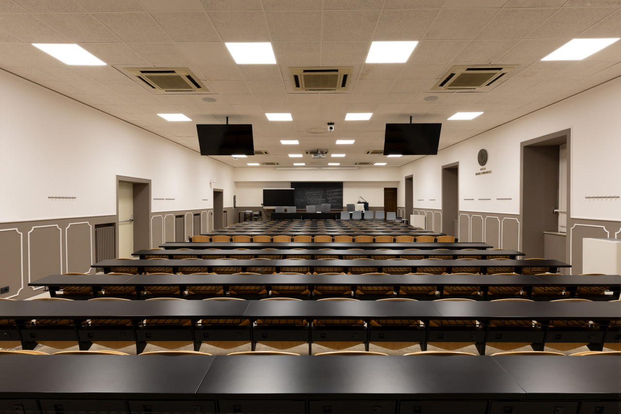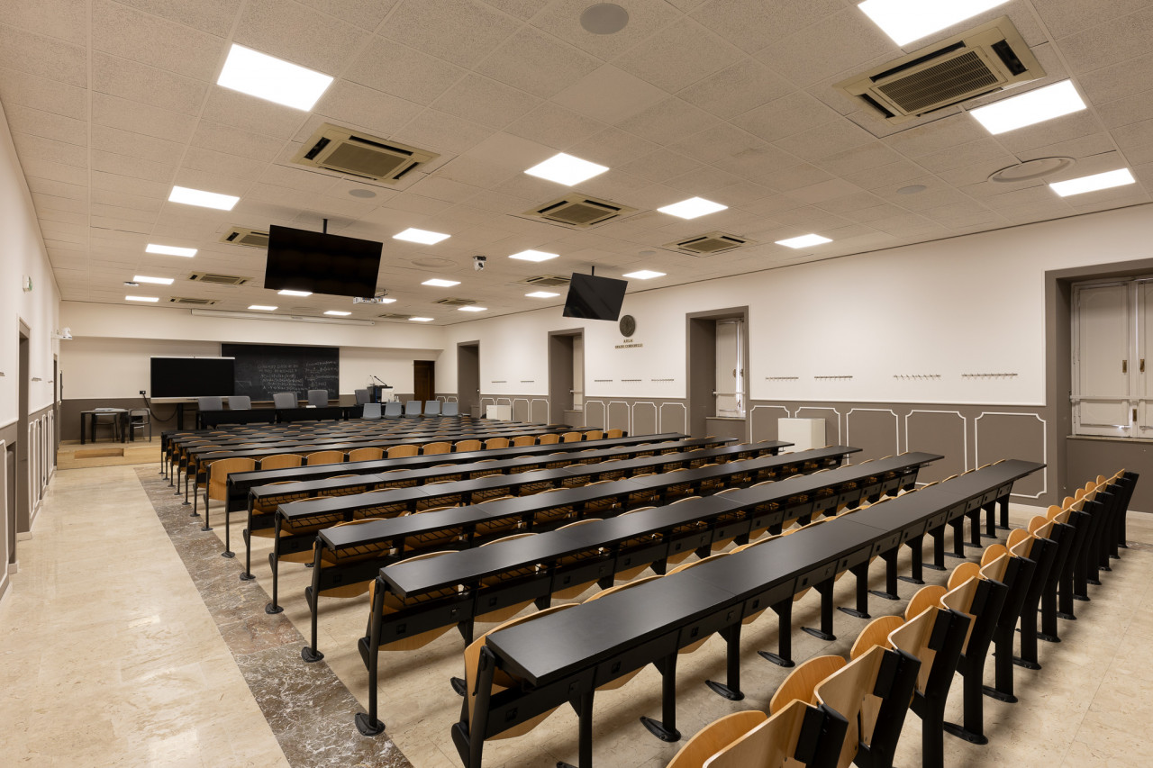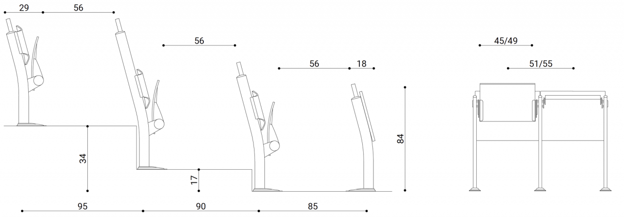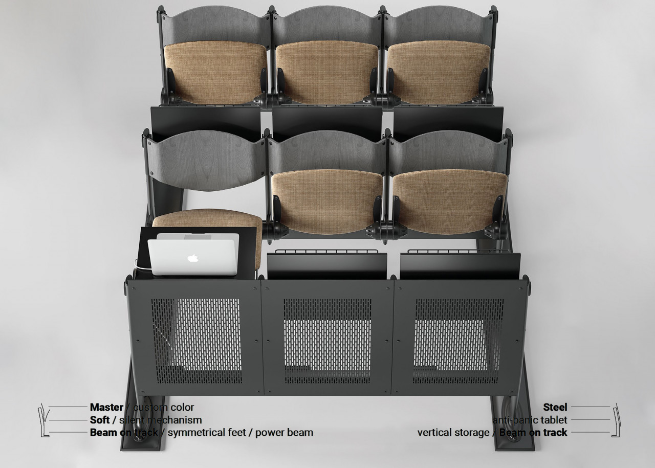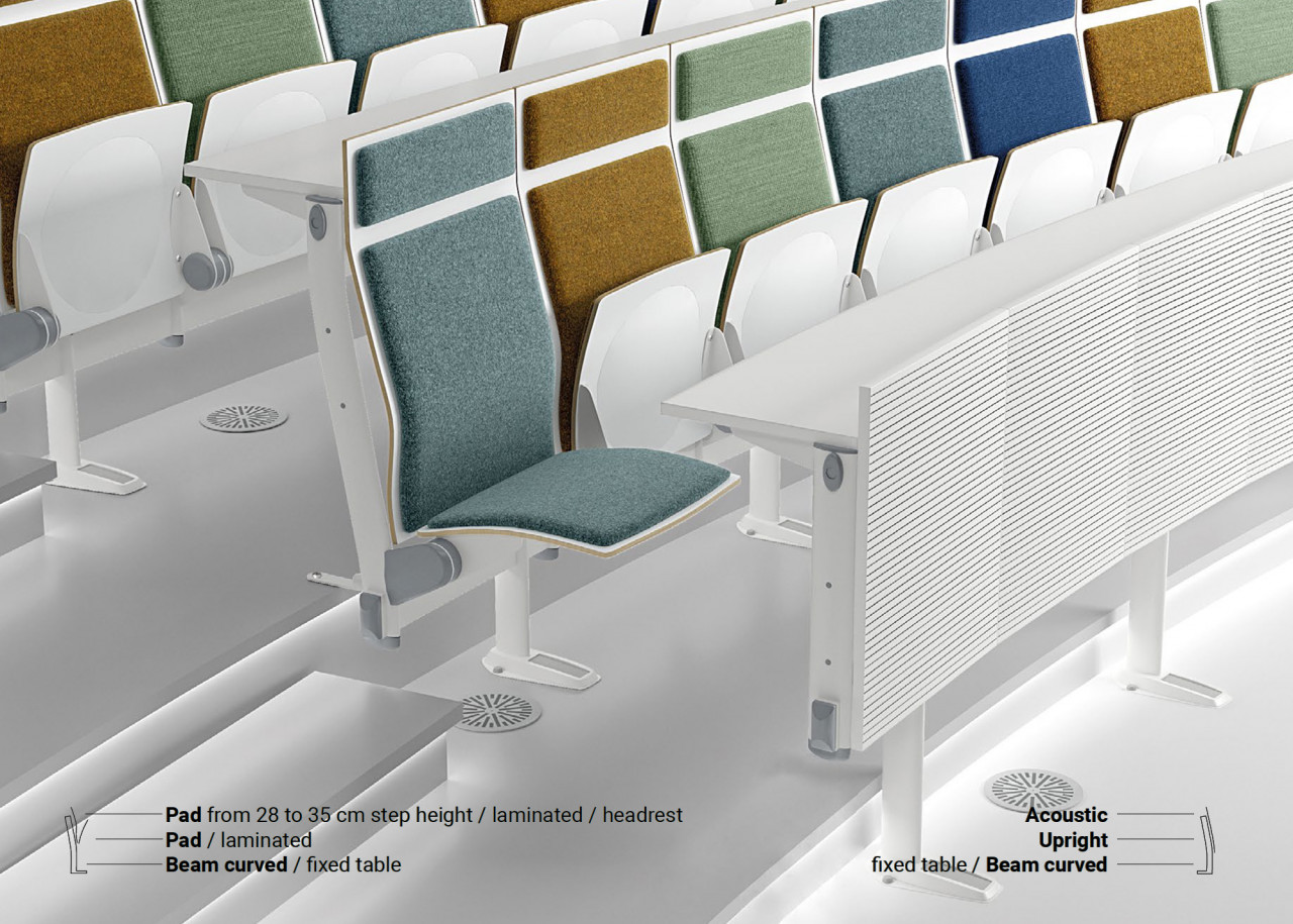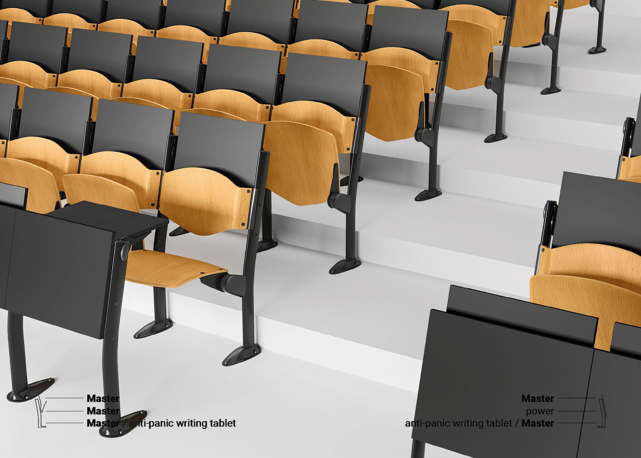 OMNIA - višenamjenski sustav za edukacijske prostore i dvorane. Ima mogućnost prilagodbe sjedala u ravninu ili na stepenicama. Stolić za pisanje može biti fiksni, montiran kao neprekidna ploča kroz cijeli red stolica ili preklopan, povezan sa svakim sjedećim mjestom te anti-panic mehanizmom.