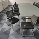Konferencijske stolice "Aria" oko stola odlično su se uklopile - prozračne su zbog naslona u mreži, udobne zbog debelo ojastučenog sjedišta te elegantne zbog kromiranim detalja na naslonu.