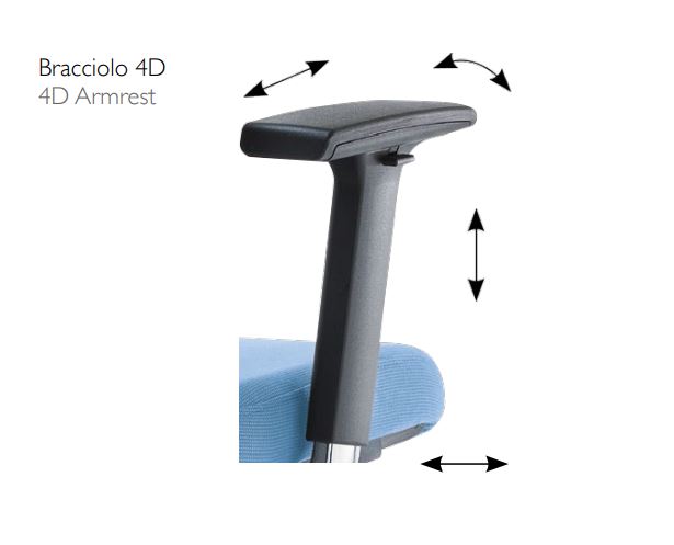 Stolicu je moguće naručiti u dvije varijante, sa visokim i niskim naslonom, ovisno o potrebi a svaki model dolazi sa 4D ojastučenim rukonaslonima, kromiranom bazom s kotačima i synchro mehanizmom koji omogućava podizanje i spuštanje sjedišta, zaključavanja nagiba naslona u 4 pozicije te kliznost sjedišta naprijed-nazad.