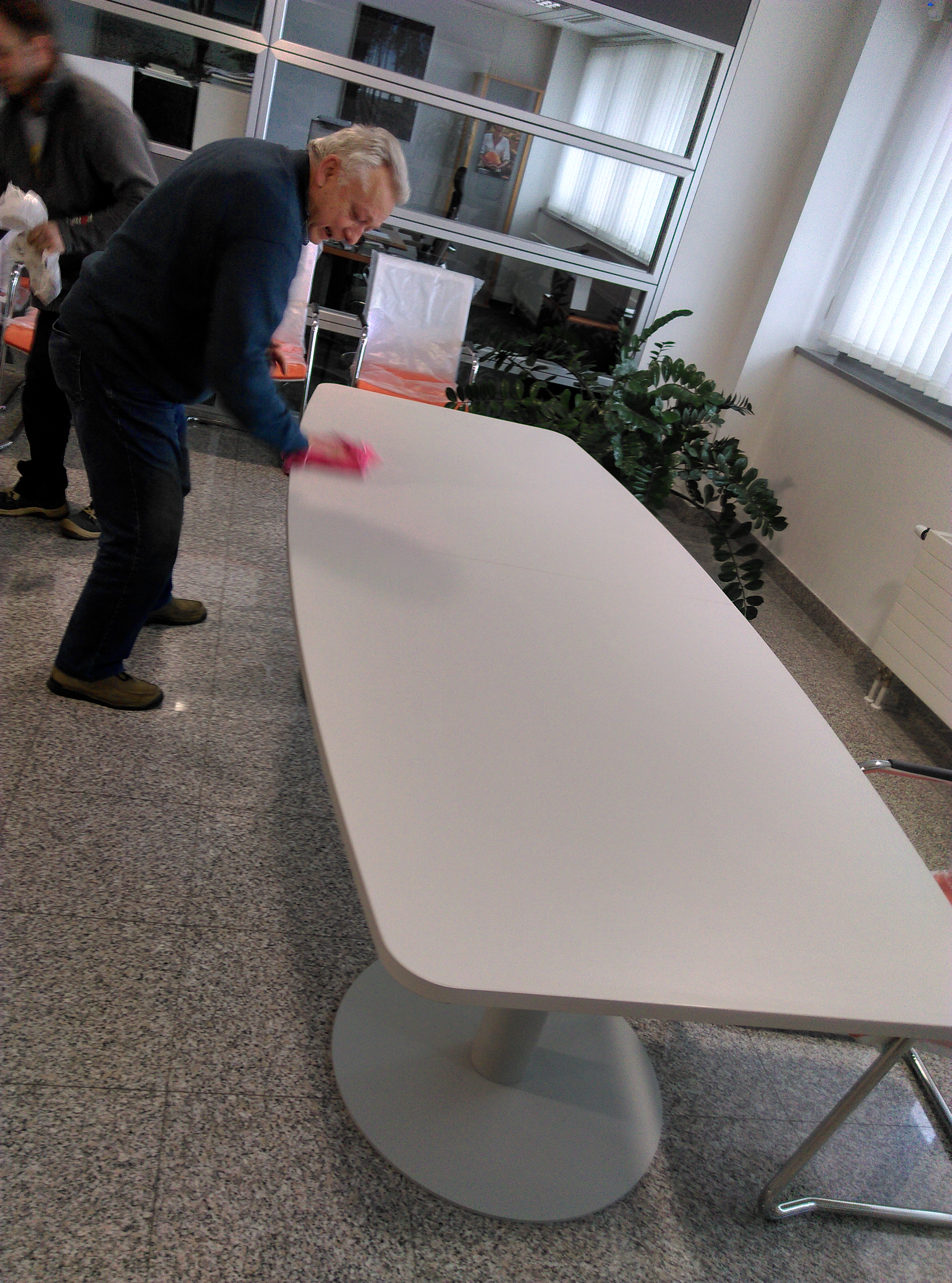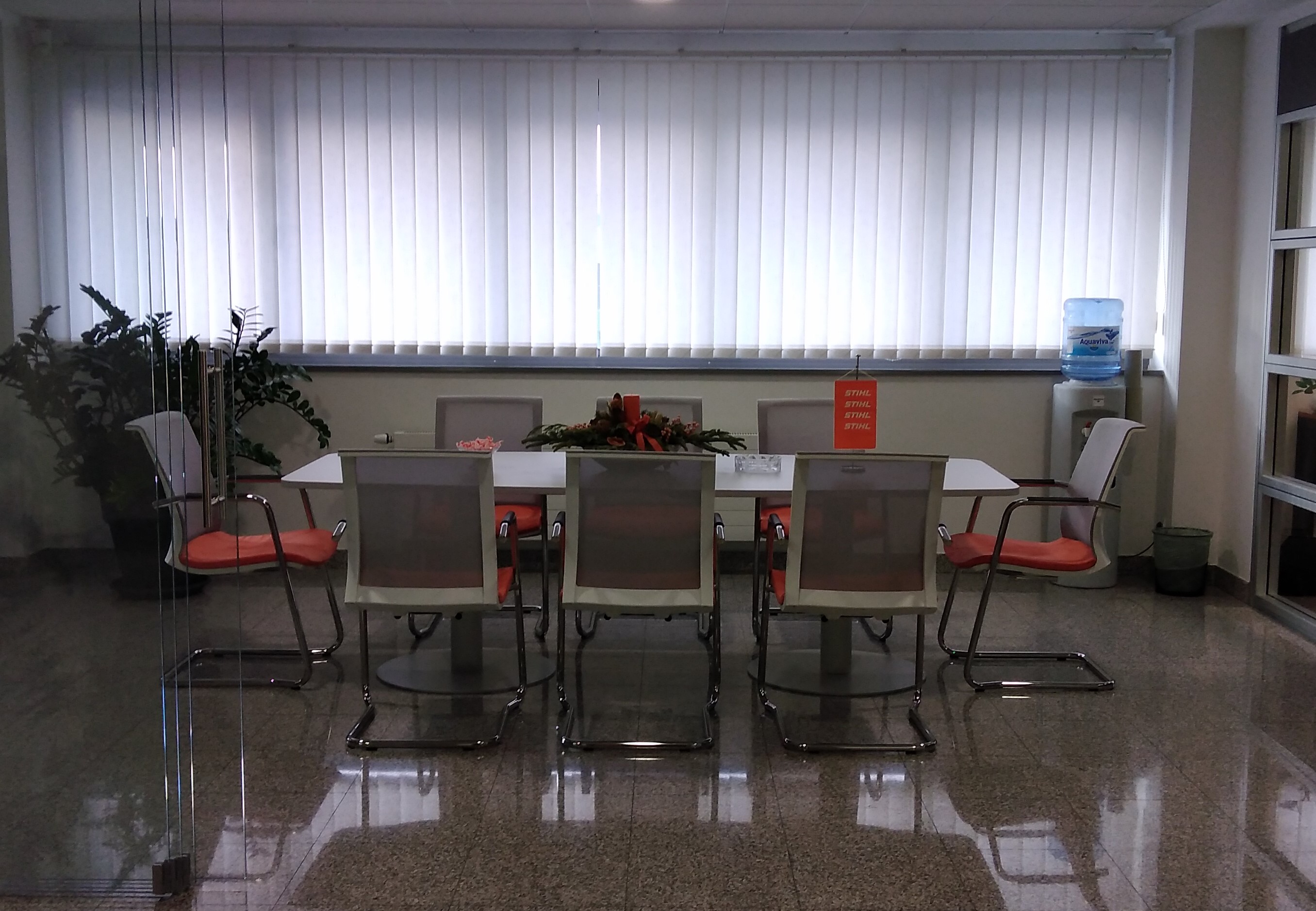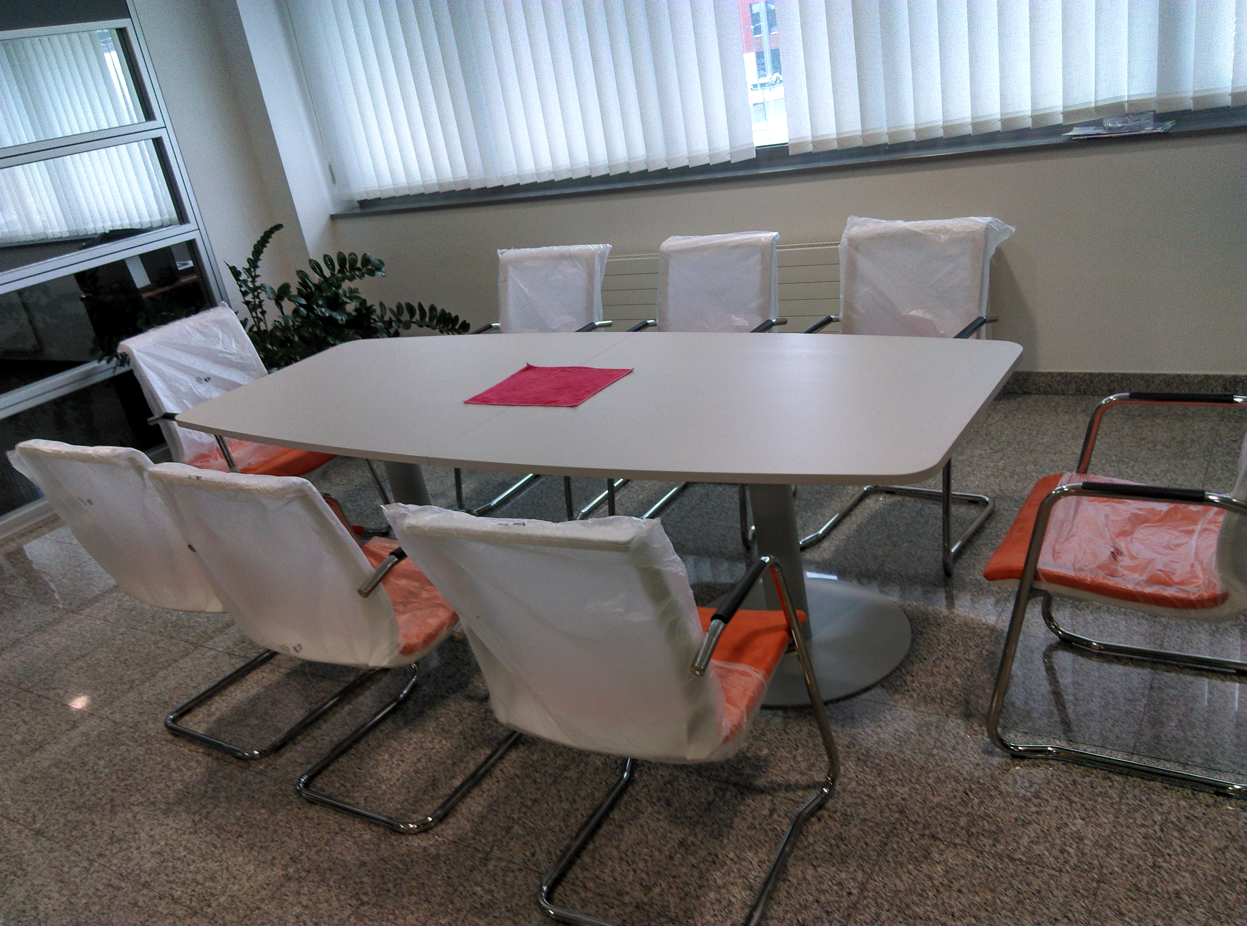 Konferencijski stol i stolice u bojama firme...narančasto, sivo, bijelo....